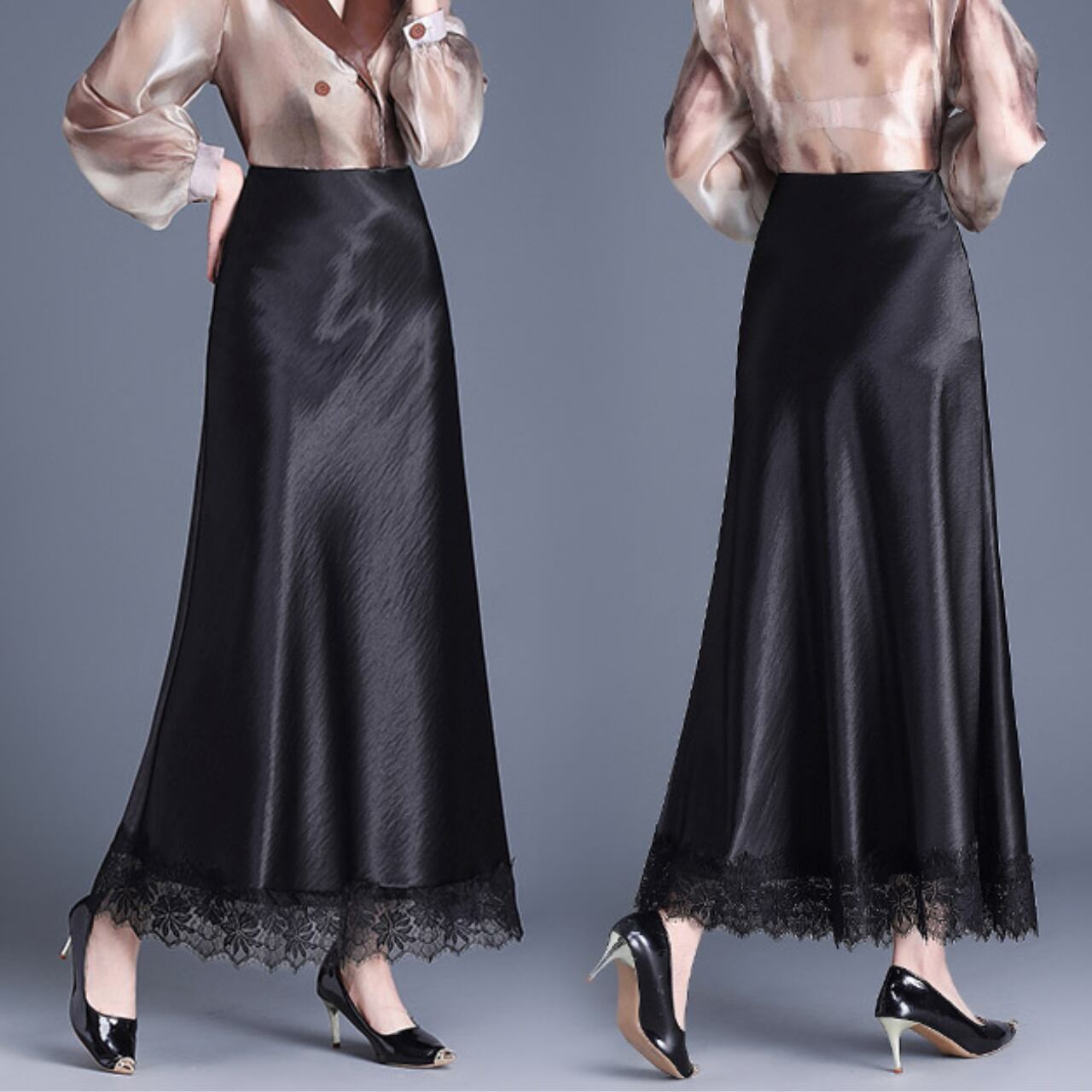 裾レースフレアロングスカート Me1024