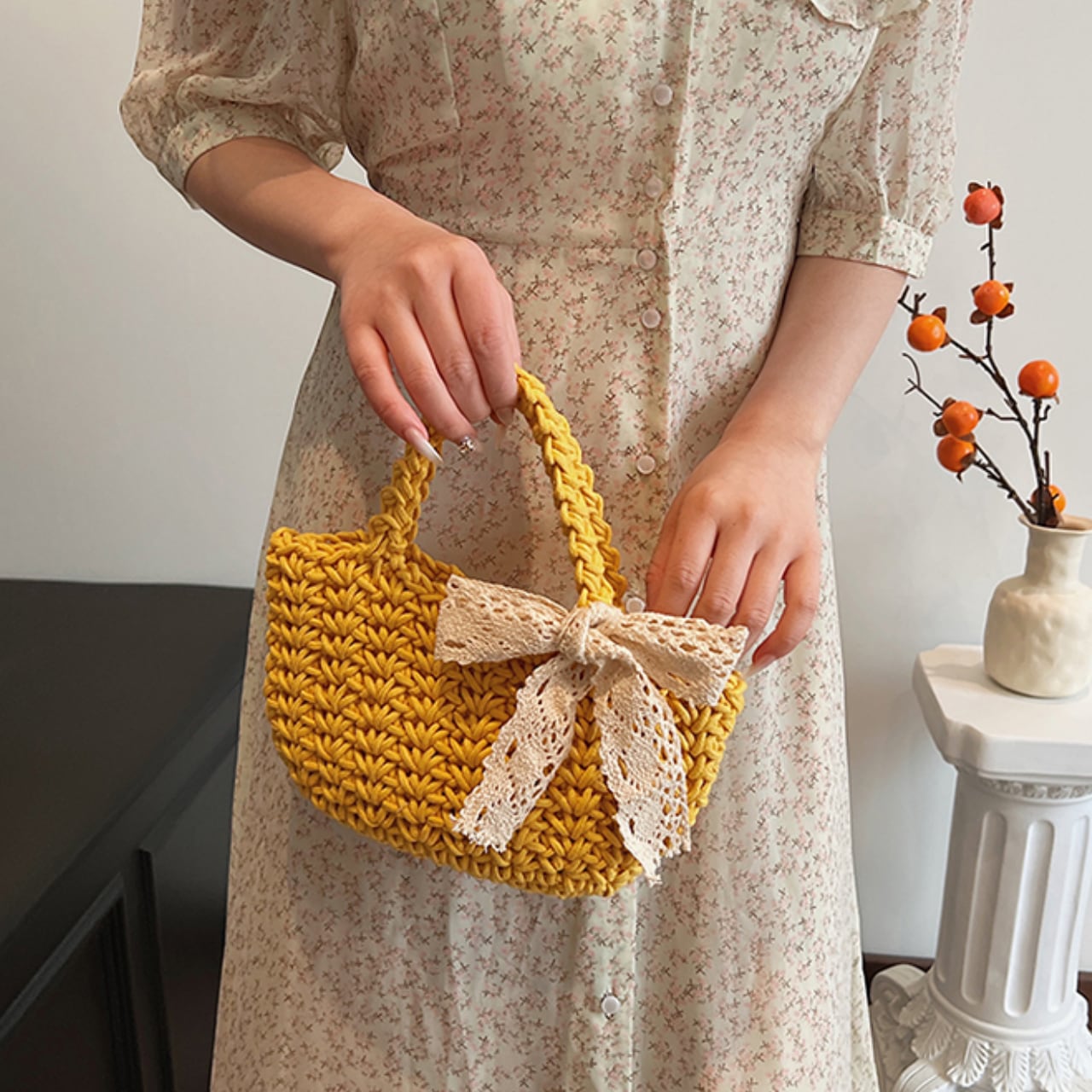 レースリボン付きミニカゴバッグ Me1087
