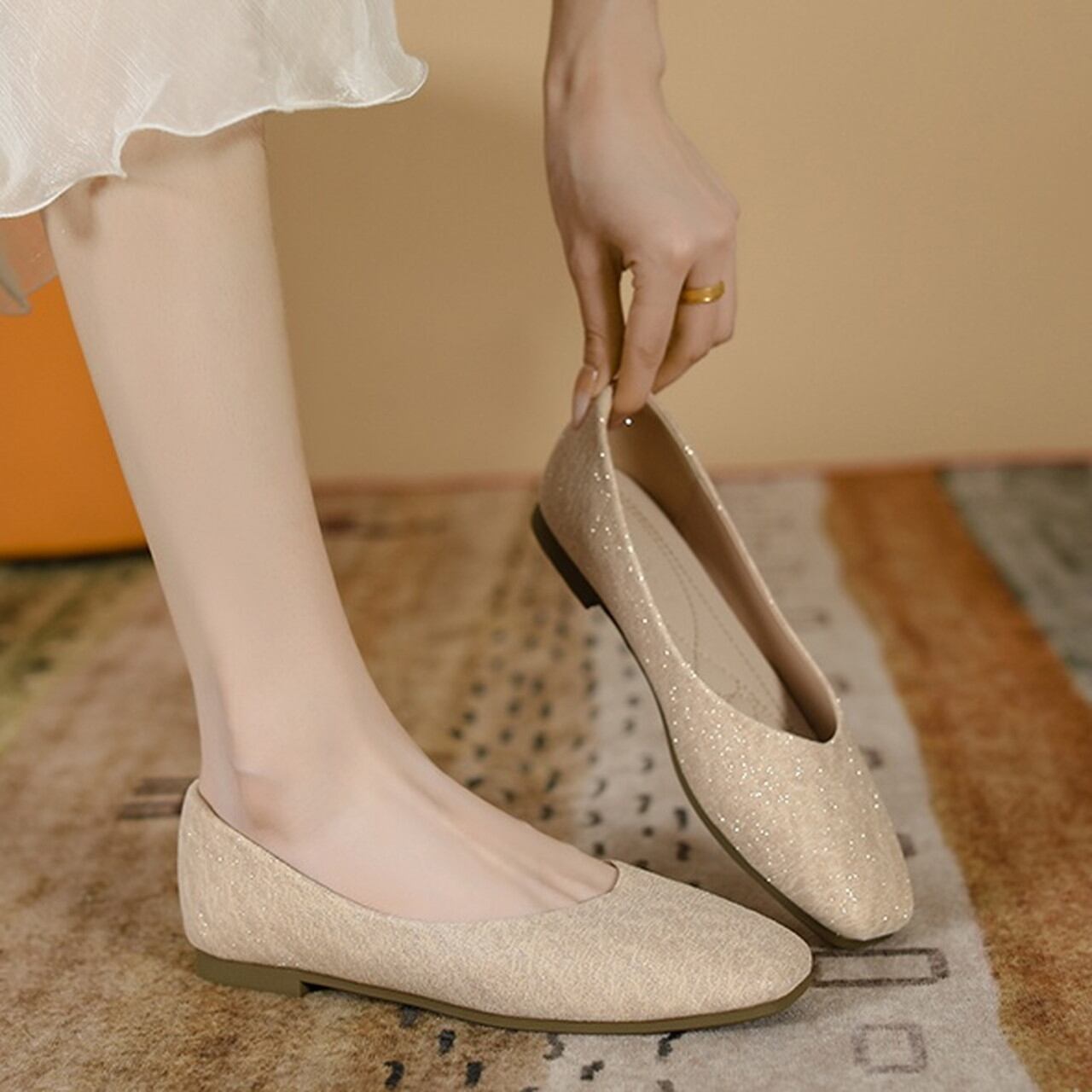 スクエアトゥデザインが洗練された印象を与え、どんなコーデにも合わせやすい万能アイテムです。