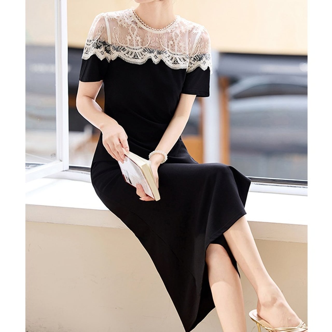 透け感のあるレースが施されたトップス部分は、華やかさと女性らしさを演出。