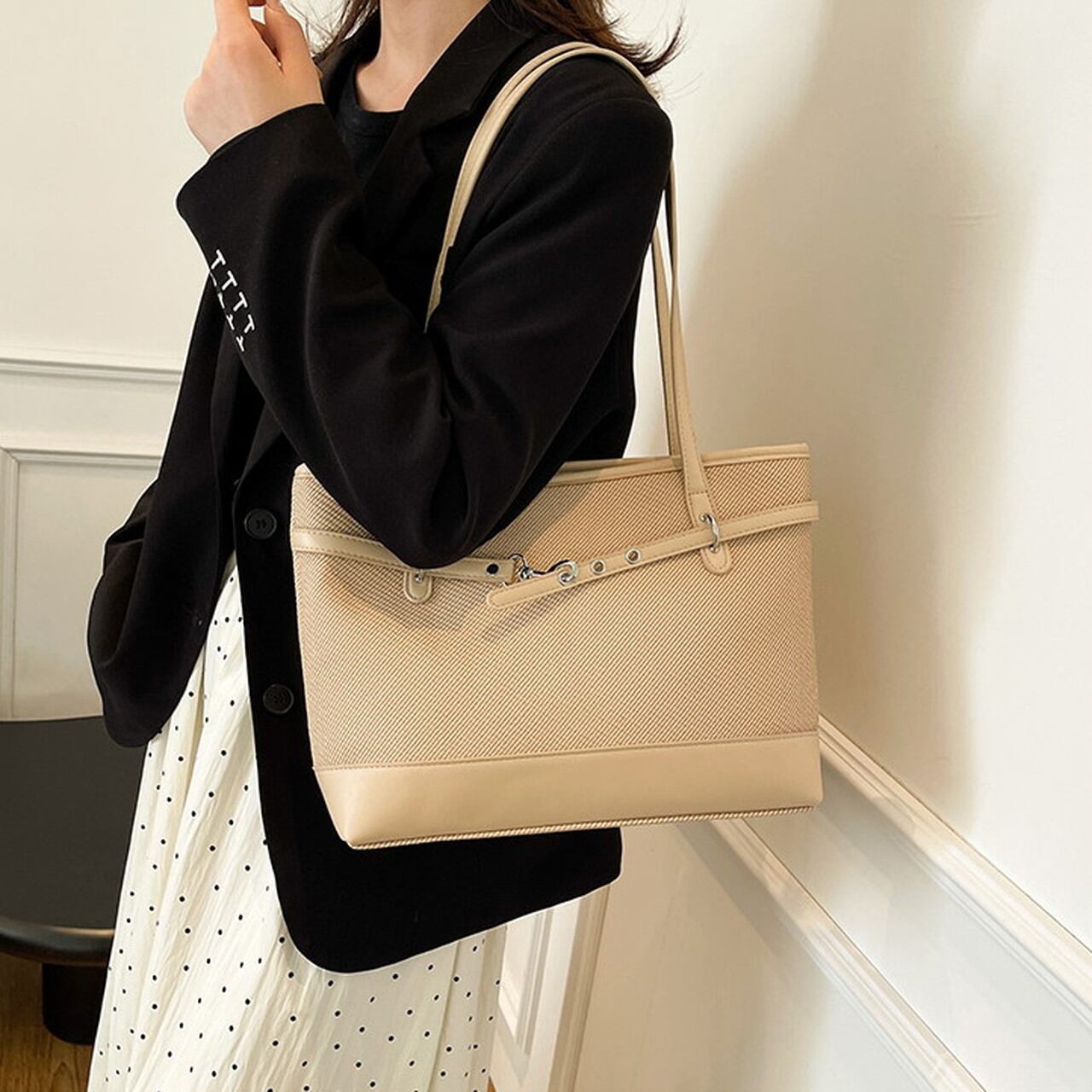 シンプルながらベルト風デザインがアクセントとなり、洗練された印象に。