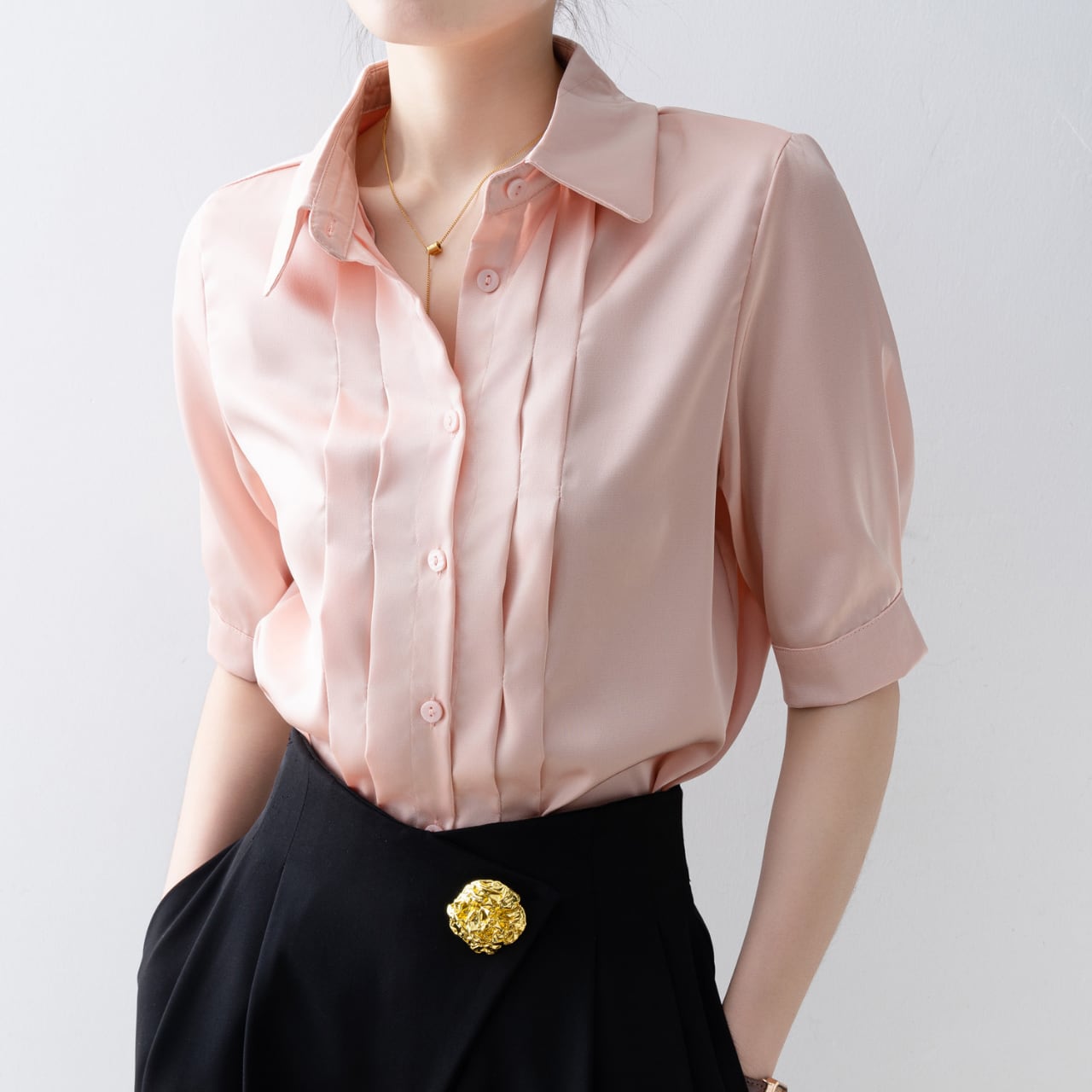 フロントプリーツデザインサテンシャツ Me1410