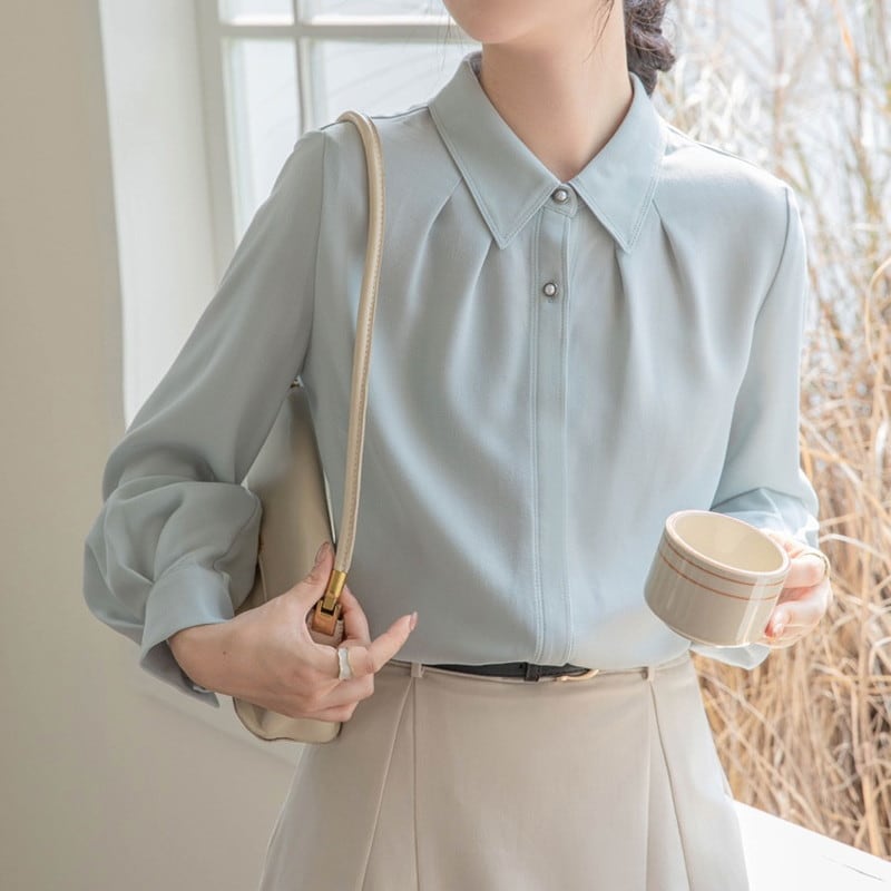 パールボタンシャツブラウス Me1421