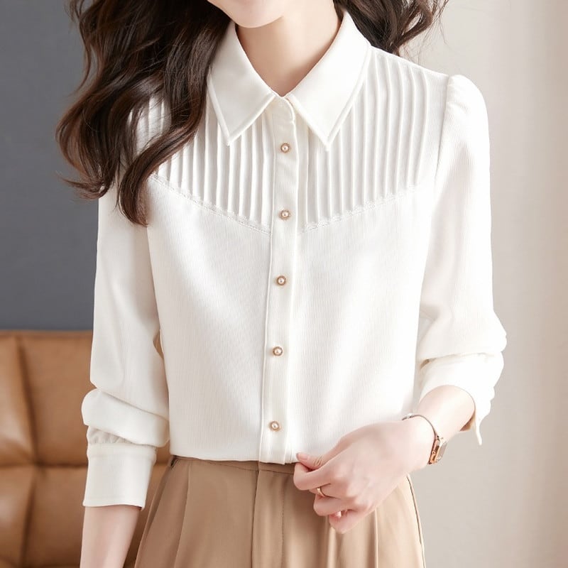 プリーツデザインシャツブラウス Me1425