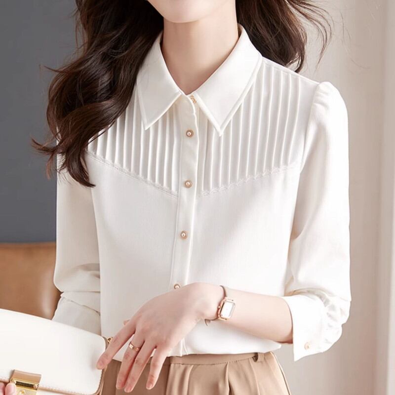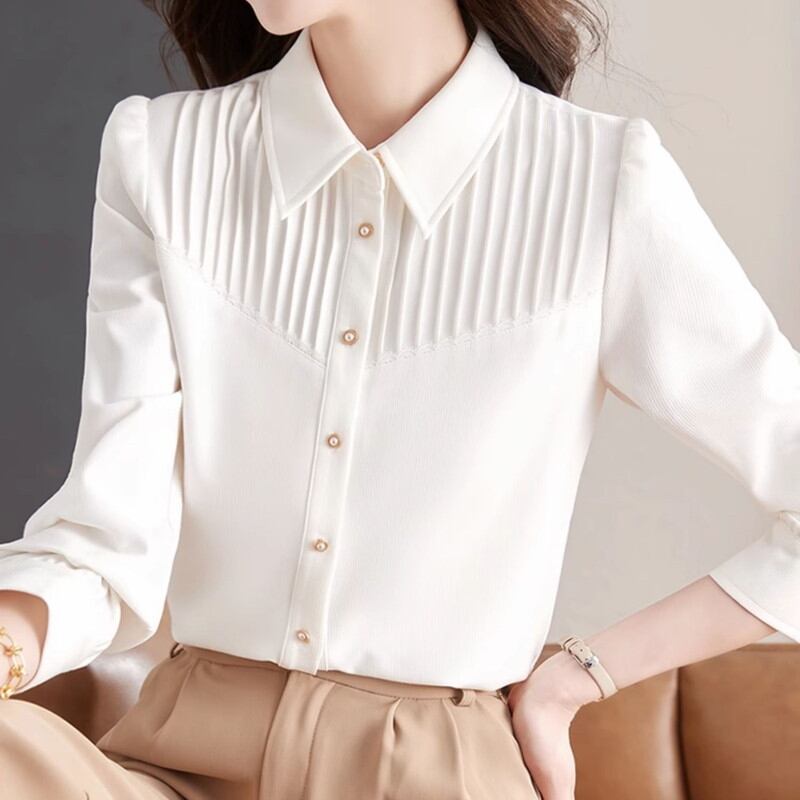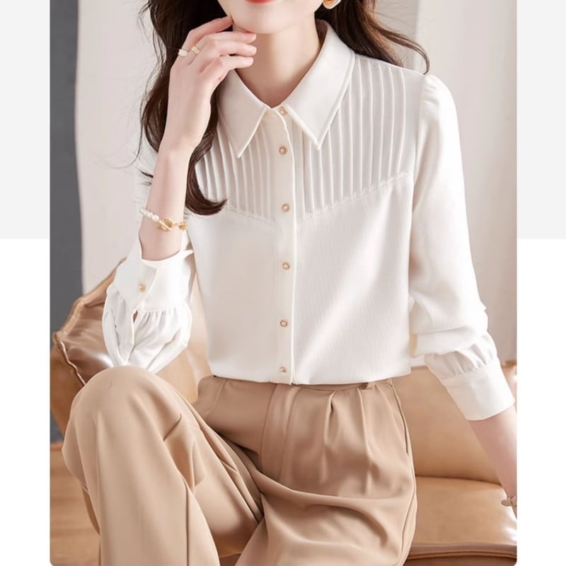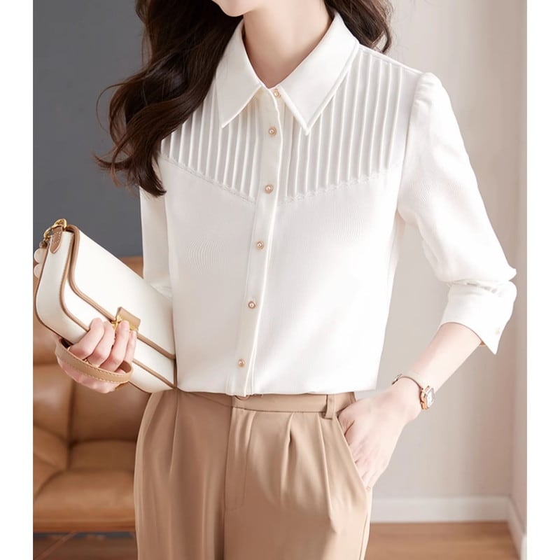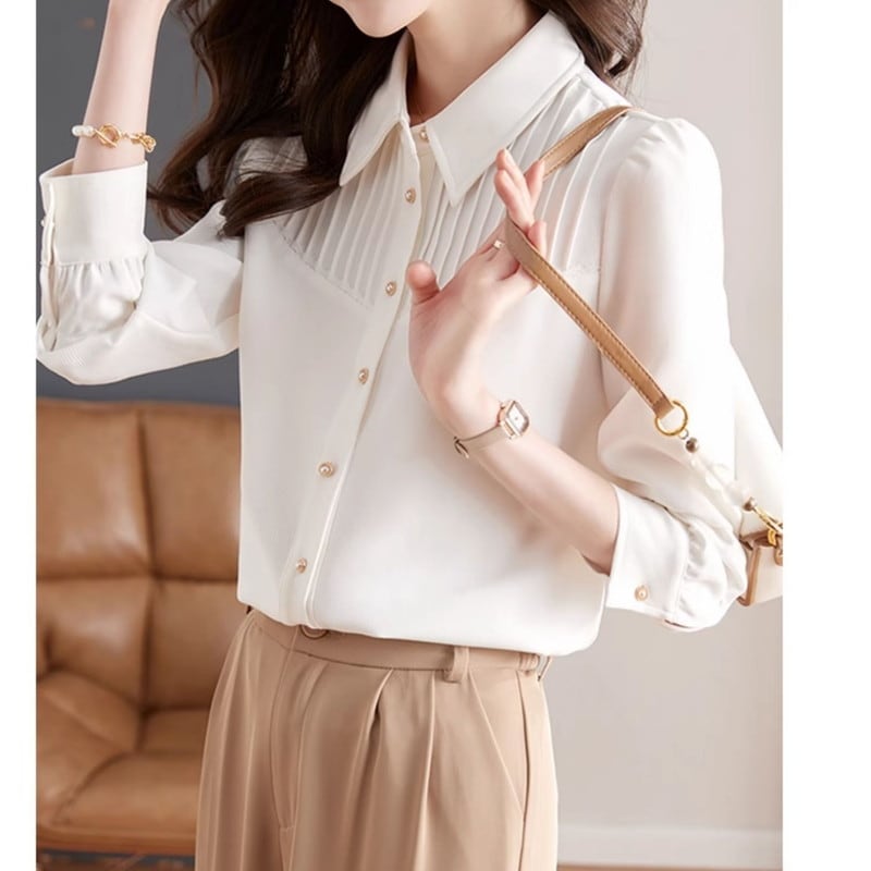 プリーツデザインが美しいシャツブラウスです。