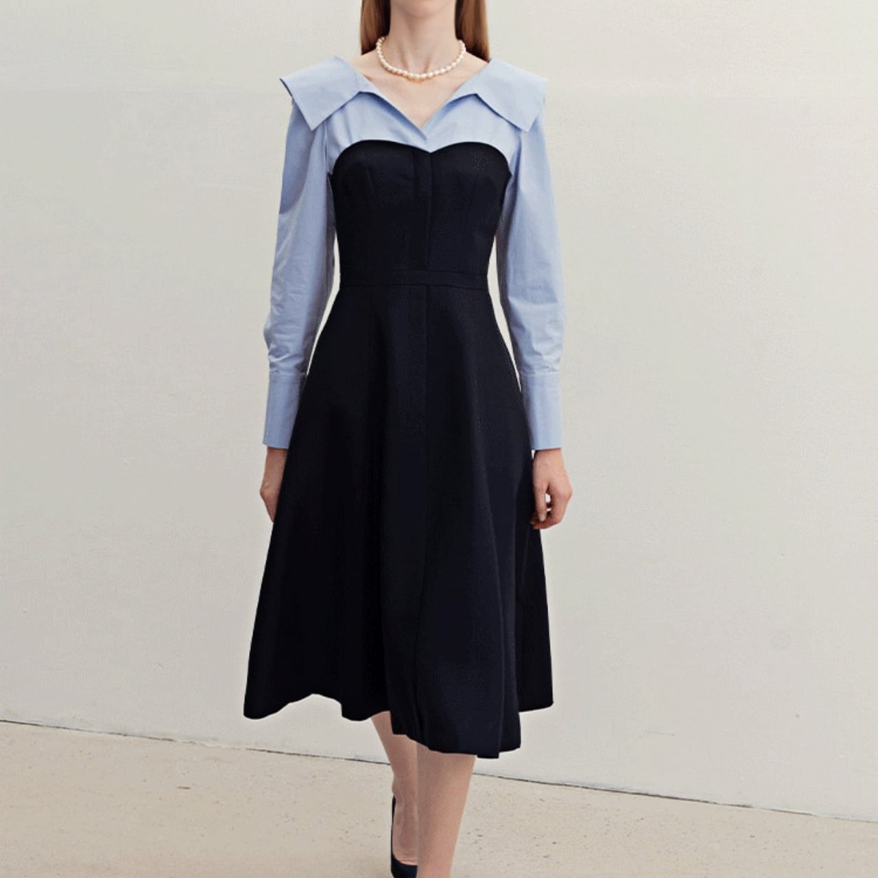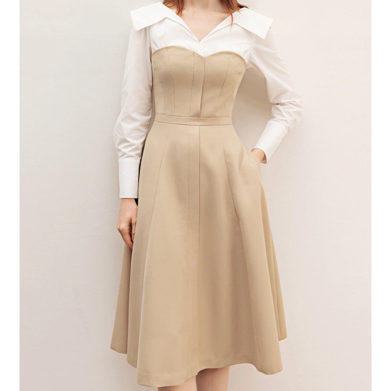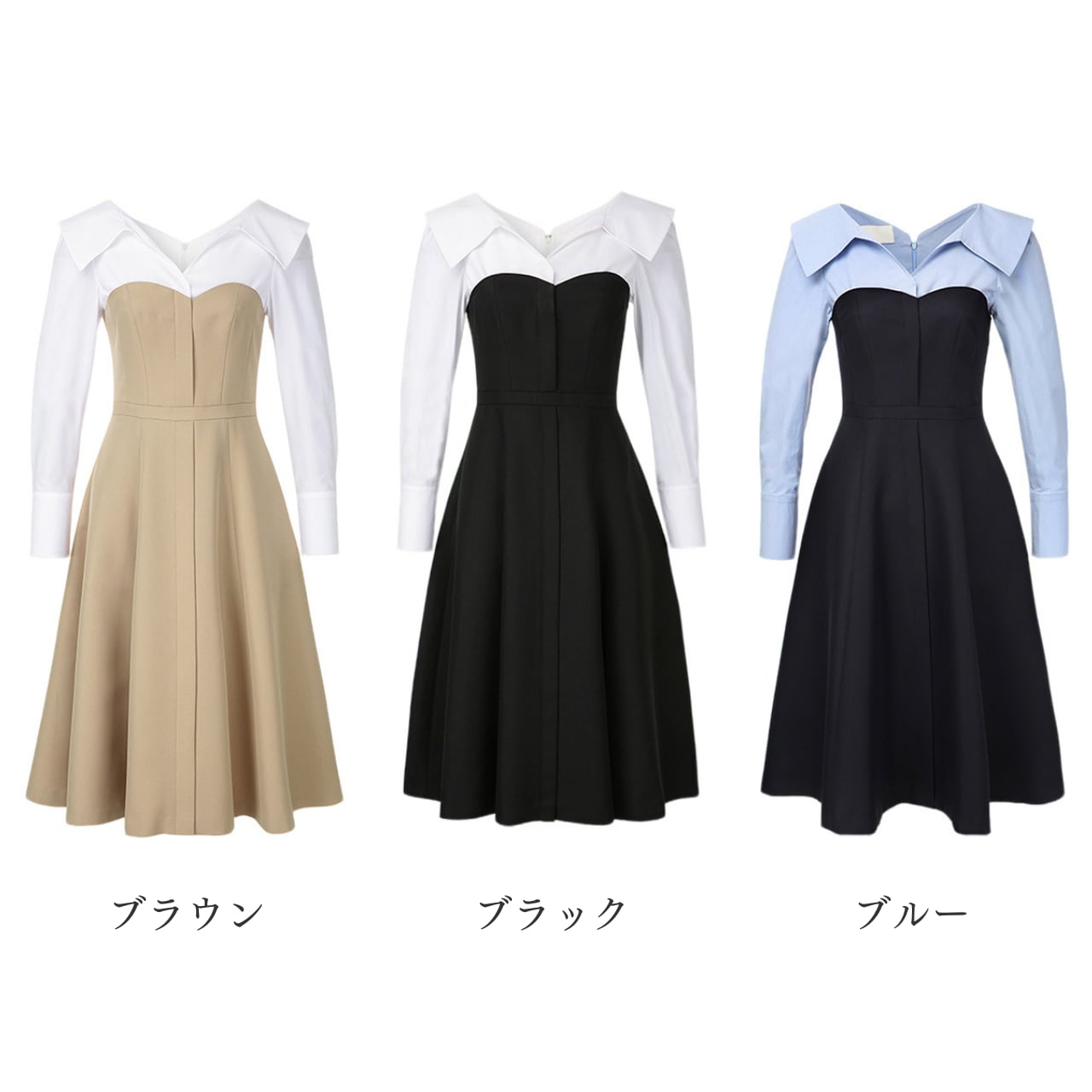 ブラウスとワンピースがドッキングしたようなデザインのシャツワンピースです。