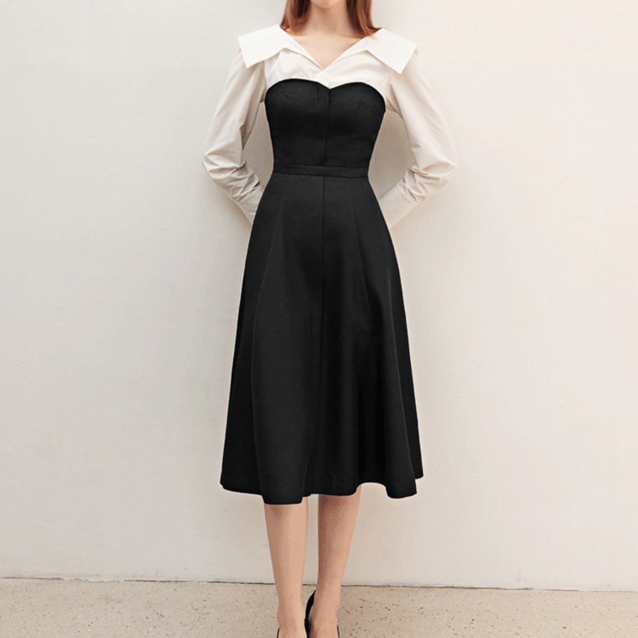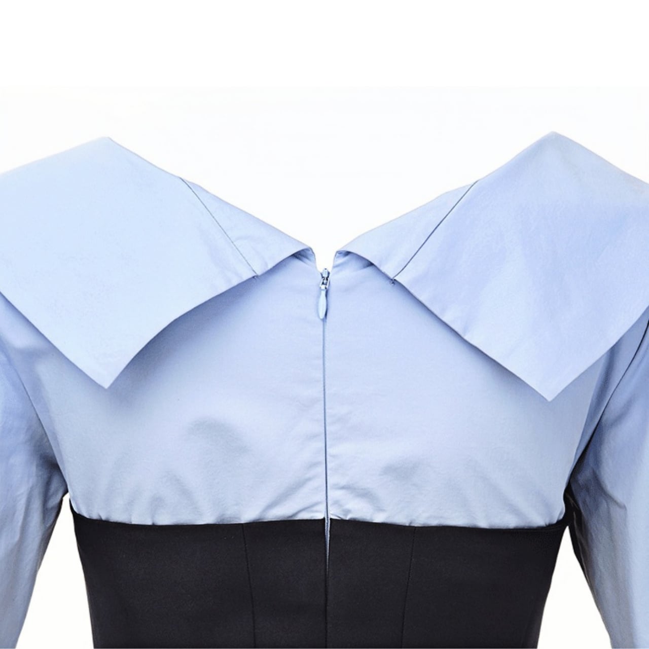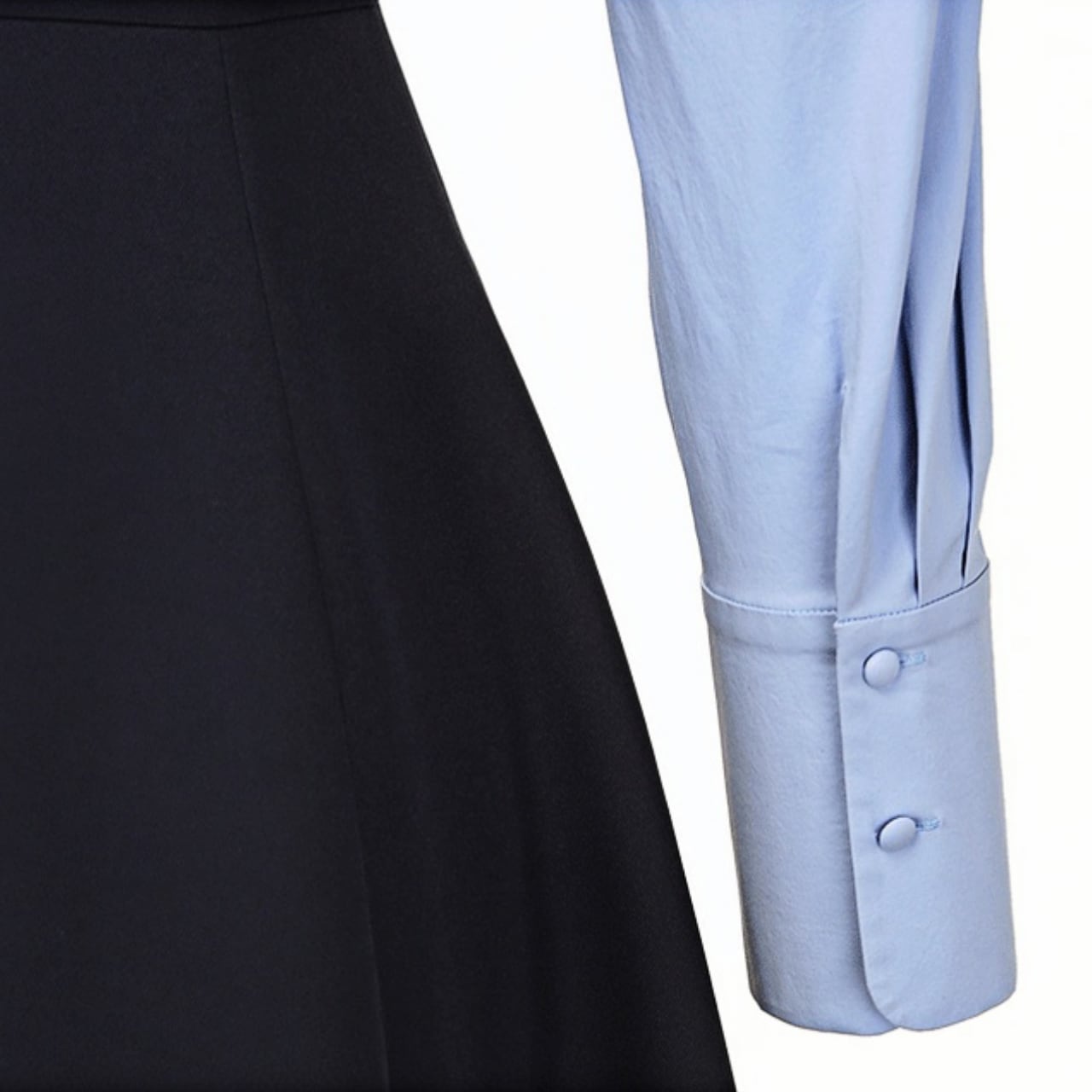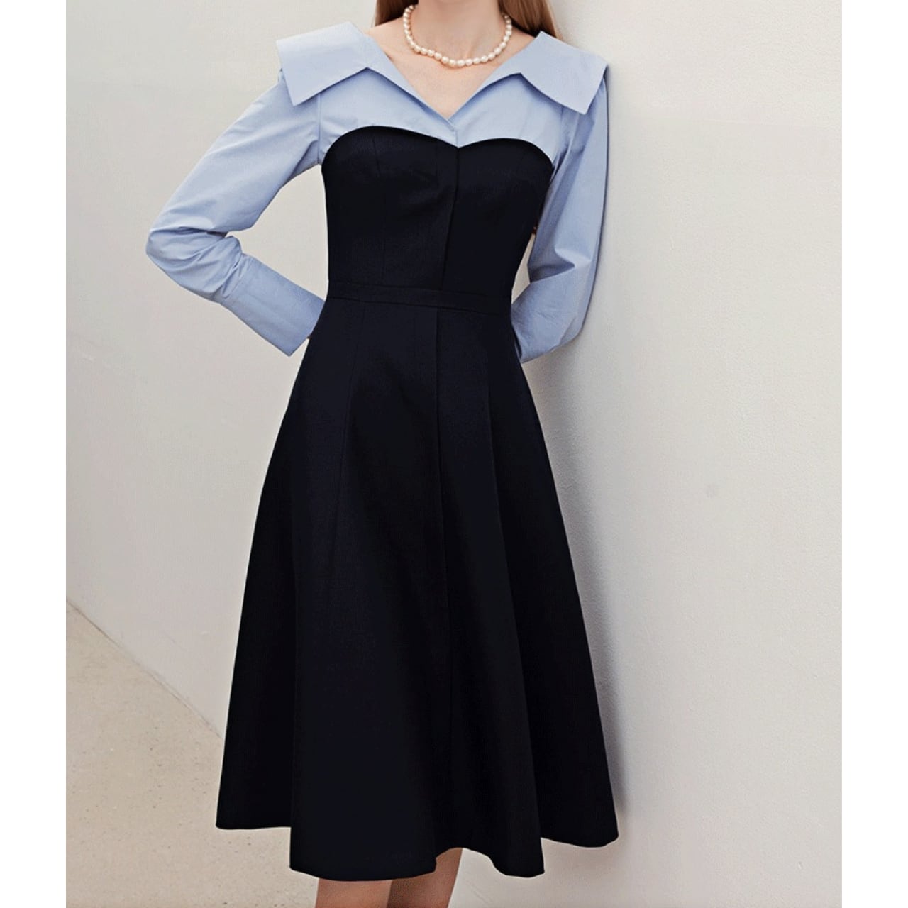 ブラウスとワンピースがドッキングしたようなデザインのシャツワンピースです。