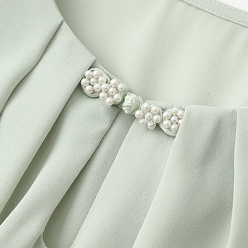シンプルながらもさりげないデザインが着こなしに華やかさをプラス。