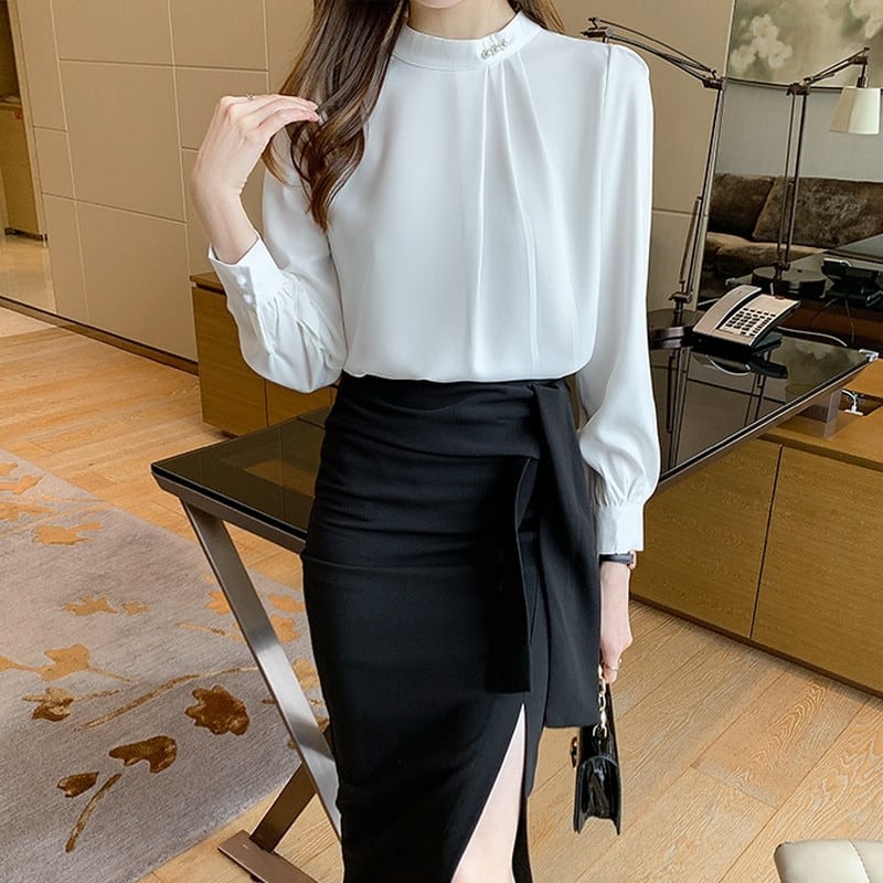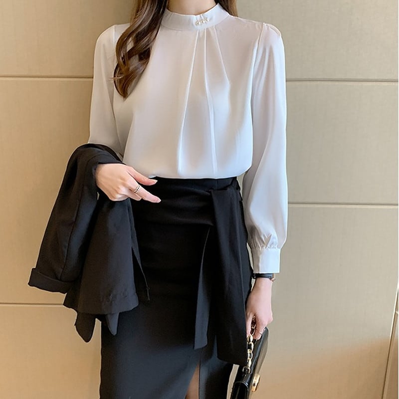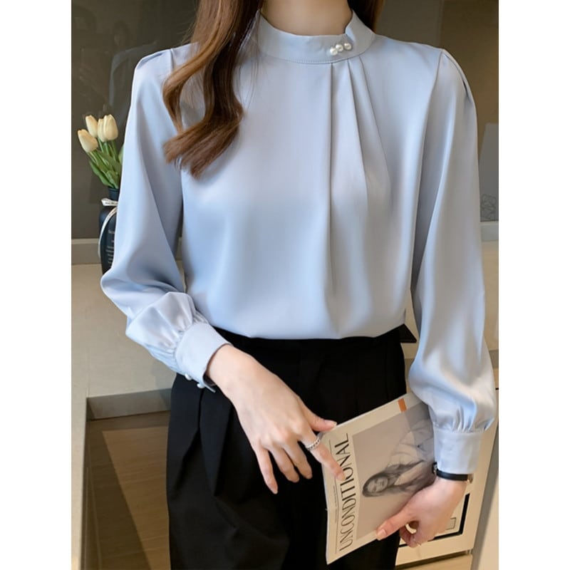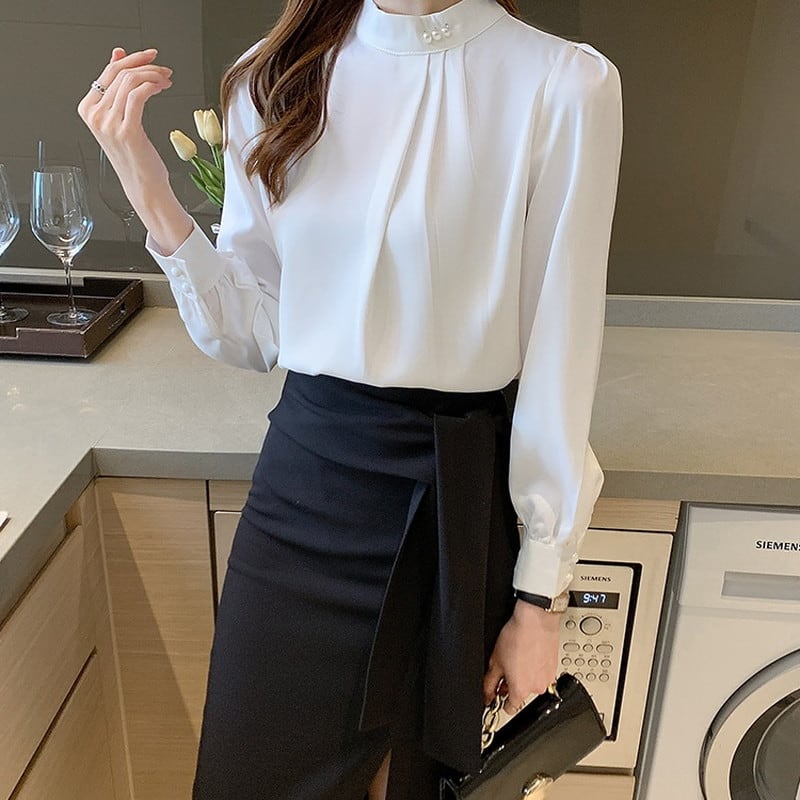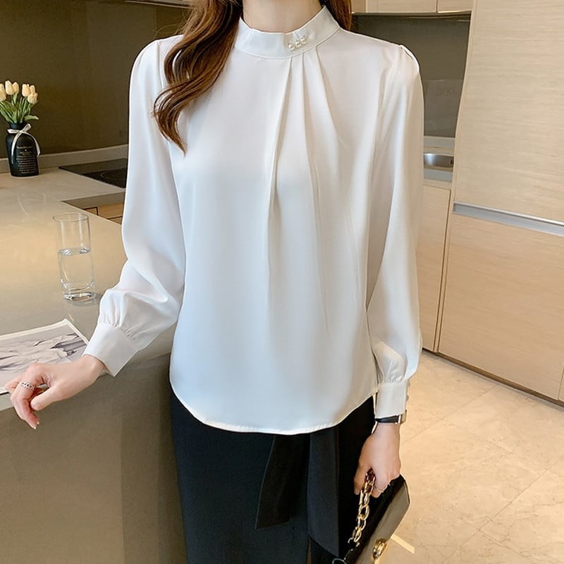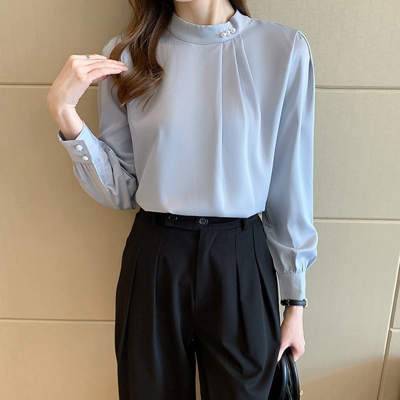 程よくゆとりのあるシルエットと、すっきりとしたモックネックデザインが、大人女性を演出。