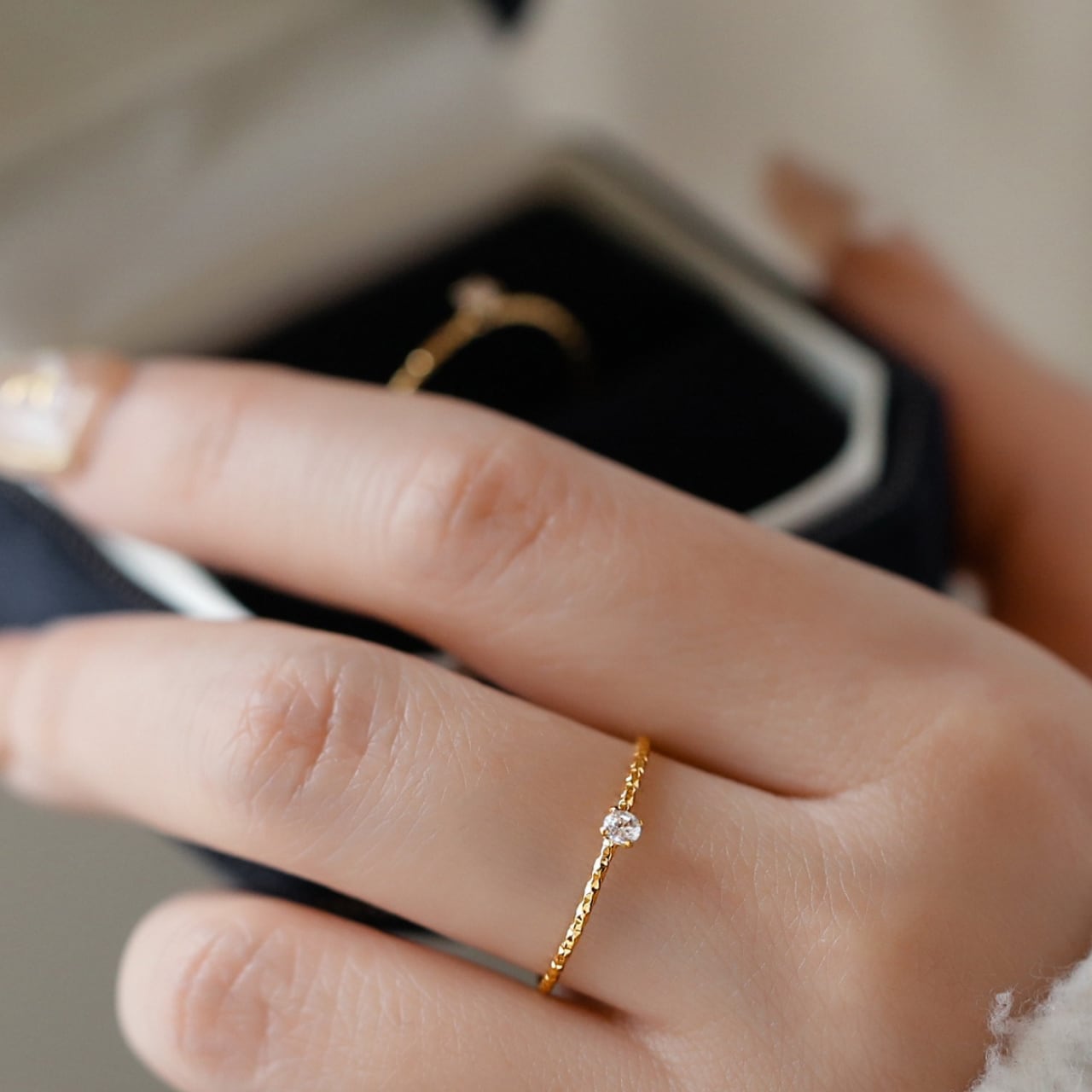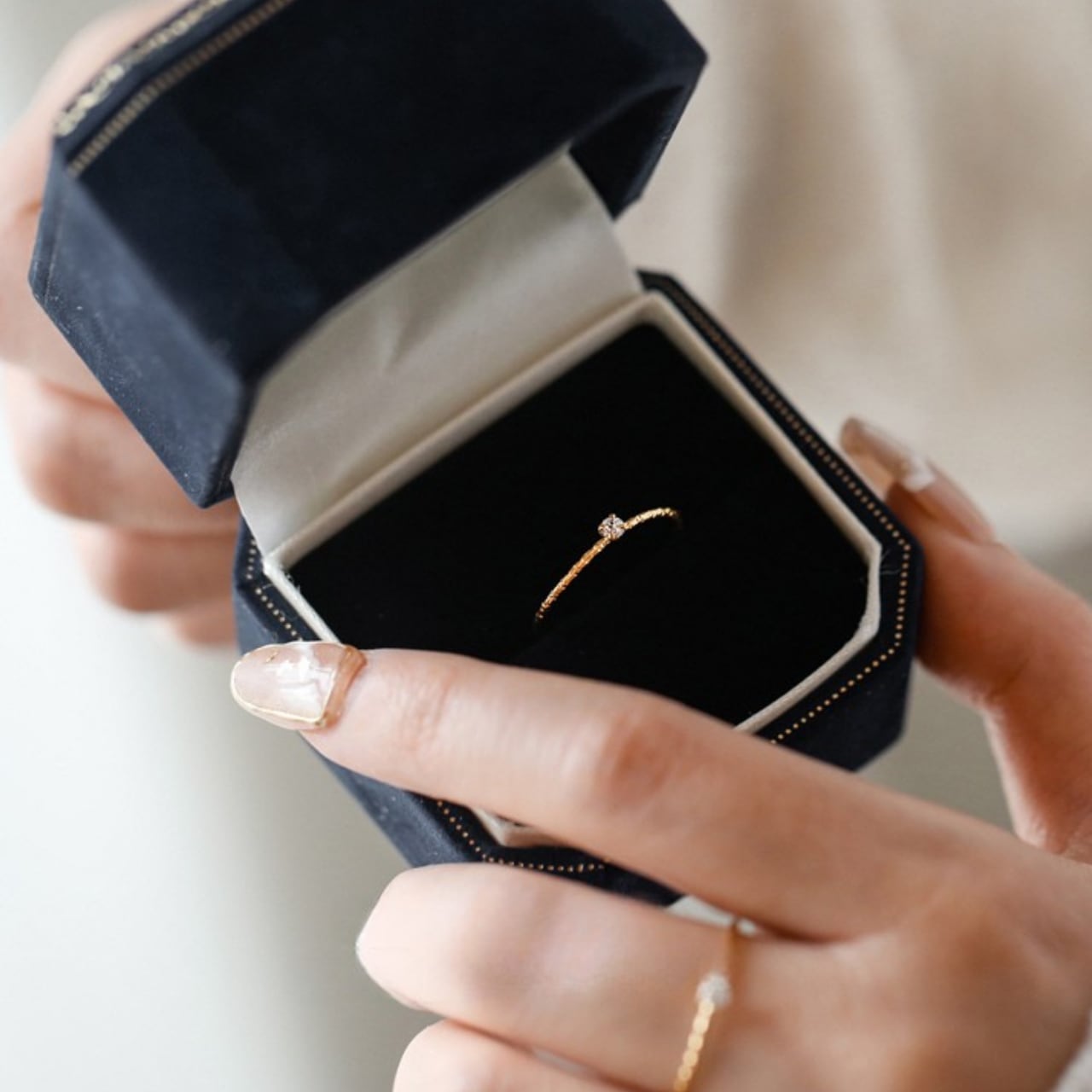 上品な輝きを放つ小さな石が、指先に華やかさをプラスします。