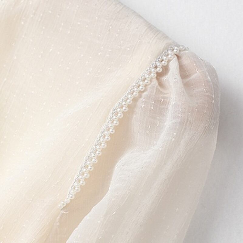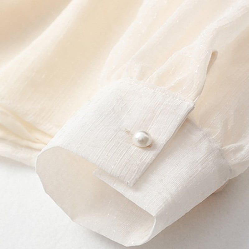シアーな袖が上品さをプラスし、オフィスシーンにもぴったり。
