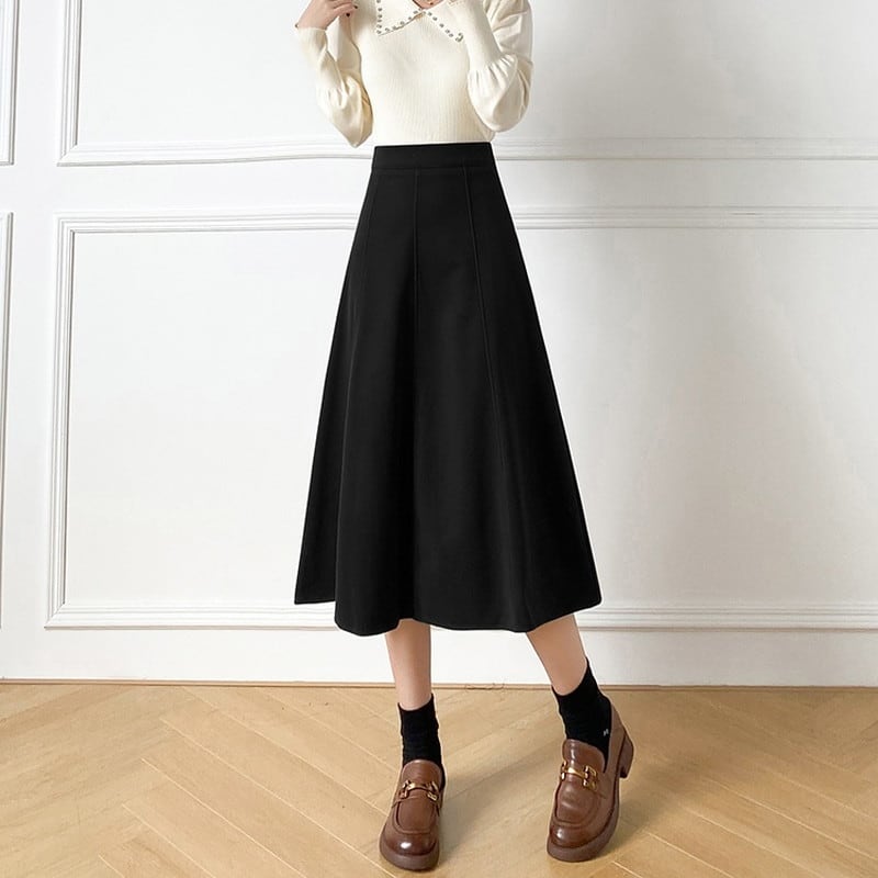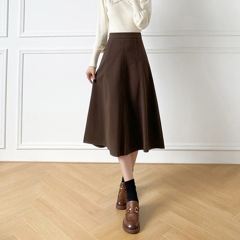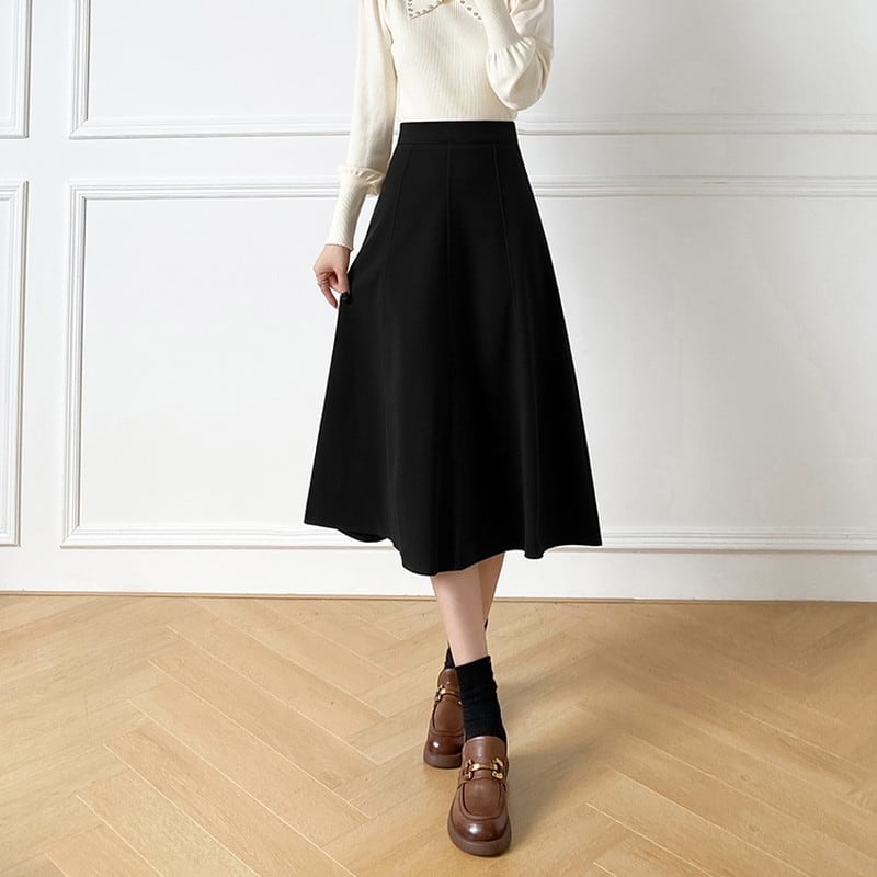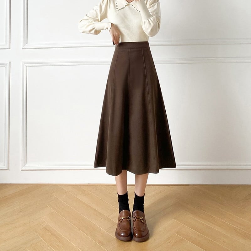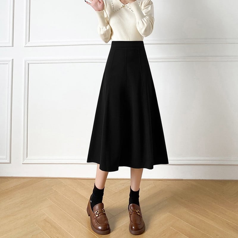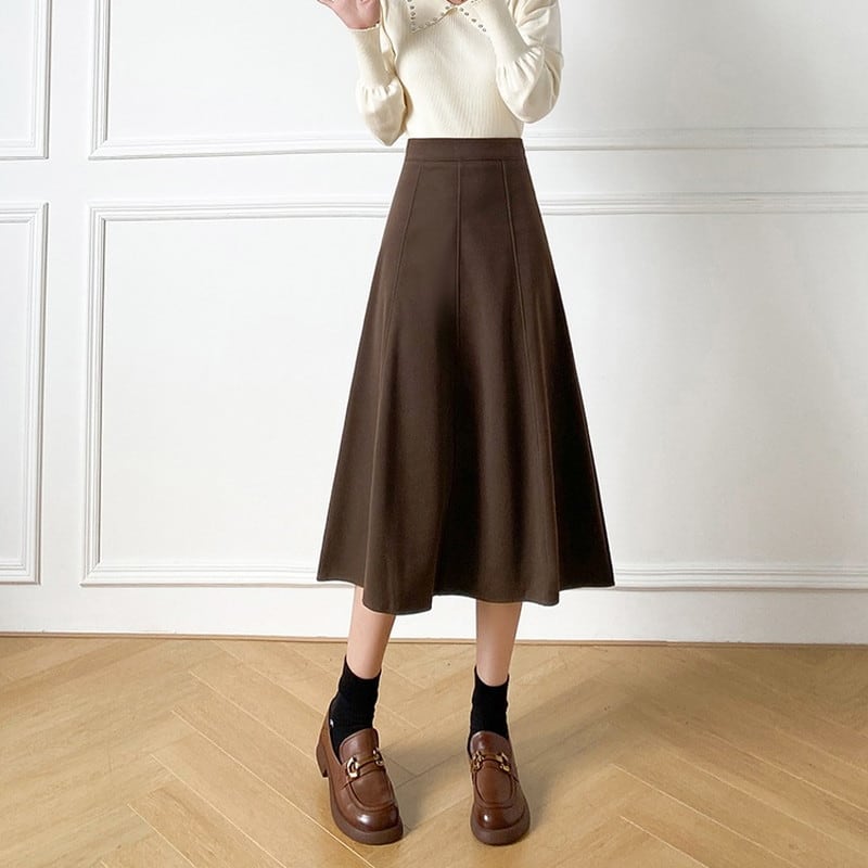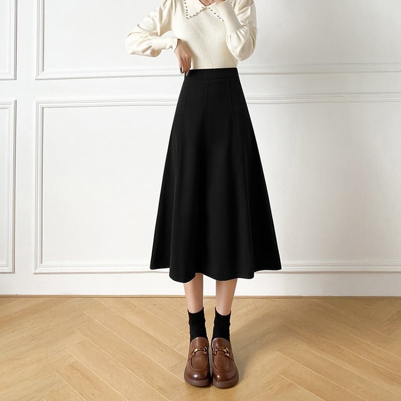 ハイウエストデザインでスタイルアップ効果も抜群なAラインスカートです。