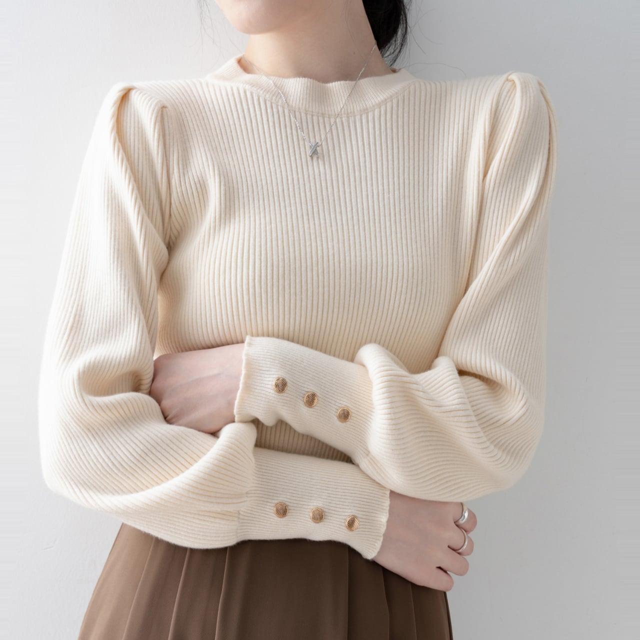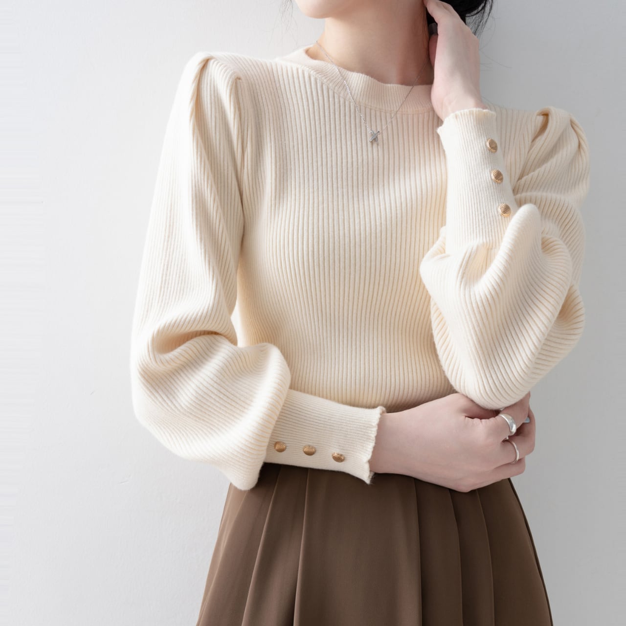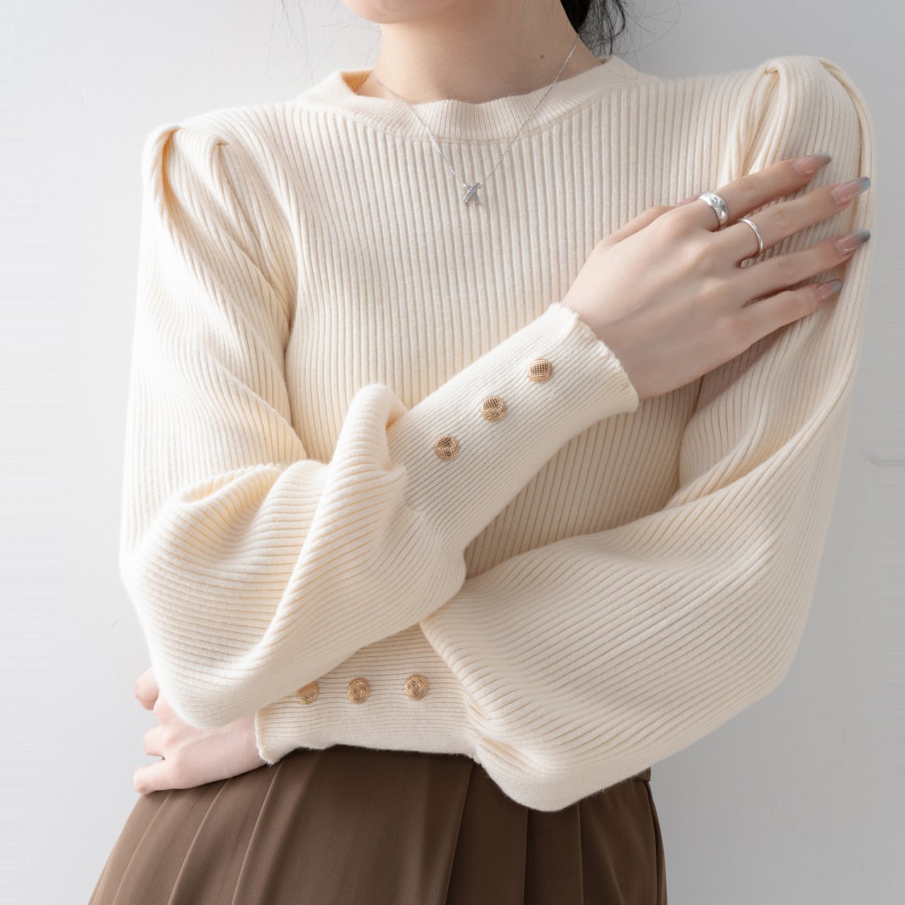 袖口のボタンがデザインのポイントとなり、着こなしに華やかさを添えます。