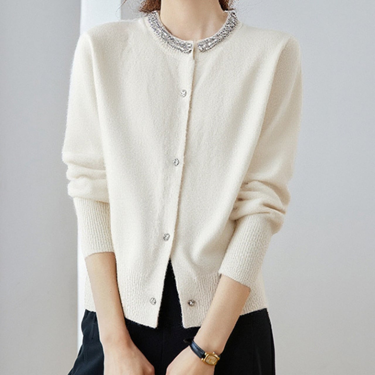 ビジュー付きラウンドネックカーディガン Me1494