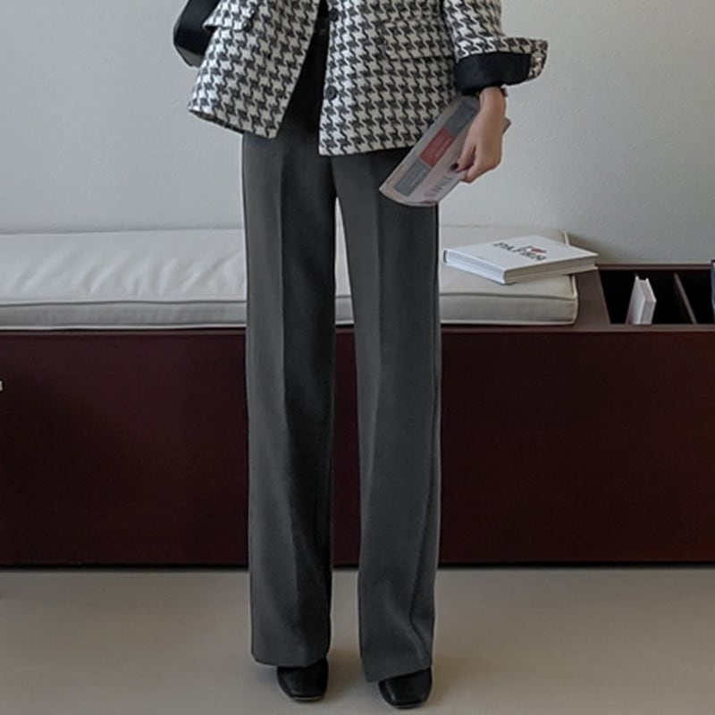 ハイウエストでスタイルアップ効果も期待できるストレートパンツです。