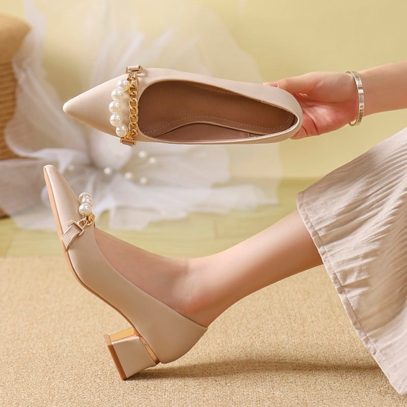 パール&チェーン付きパンプス Me1509