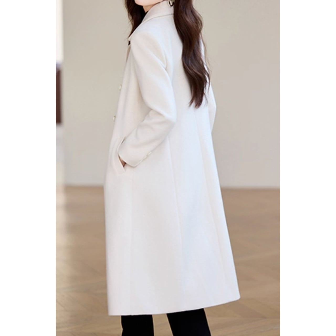 シンプルなデザインで洗練された印象を与えるロング丈のチェスターコートです。