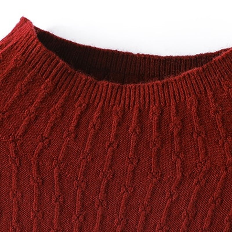 ボトルネックが上品な印象を与えるニットトップスです。