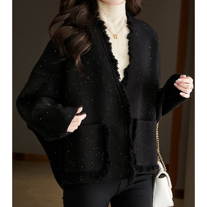さりげなく輝くラメ素材が上品な華やかさを添え、シンプルなコーデも一気に格上げ。