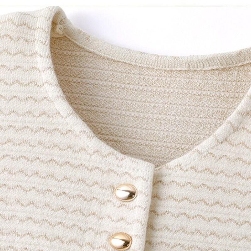 上品なボタンが洗練された印象を与え、羽織るだけでこなれたスタイルに仕上がります。
