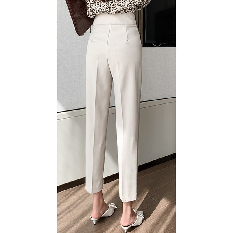 タック入りのきれいなシルエットが魅力のストレートパンツです。