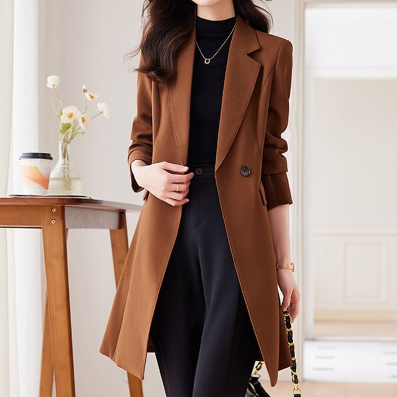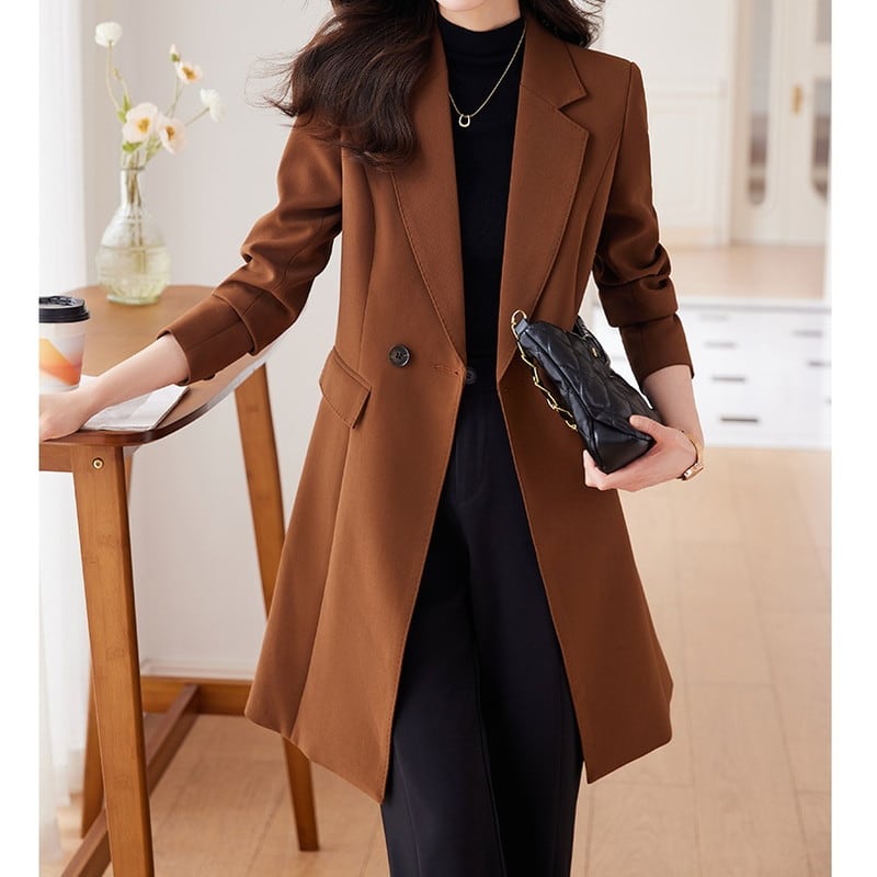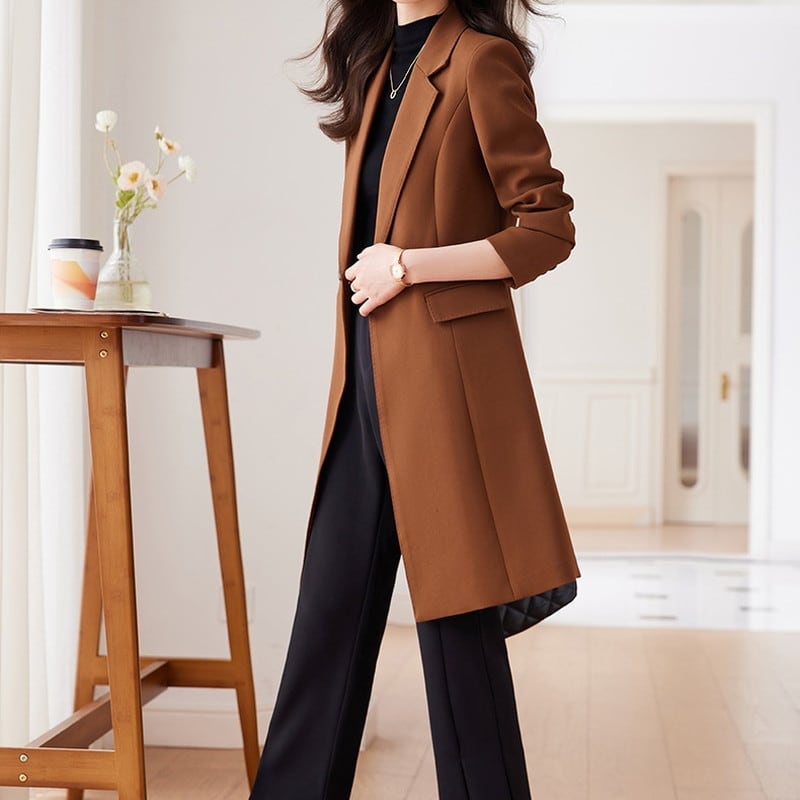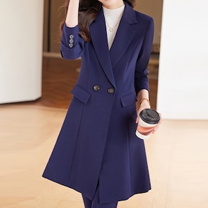 すっきりとしたシルエットが魅力のロングテーラードコートです。