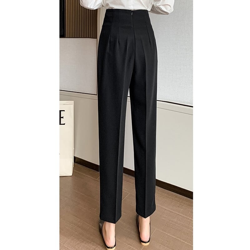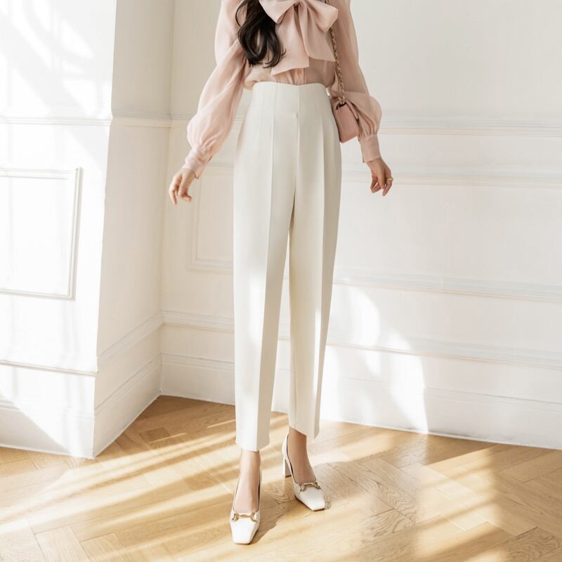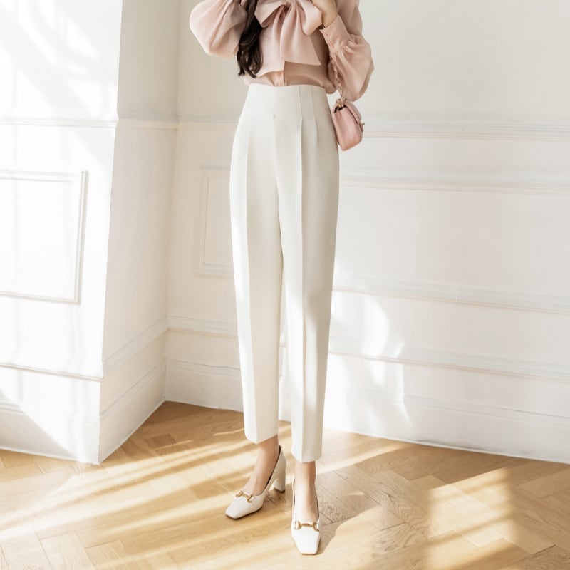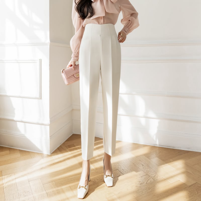 ハイウエストデザインがウエスト位置を高く見せ、脚長効果とスタイルアップを叶えます。