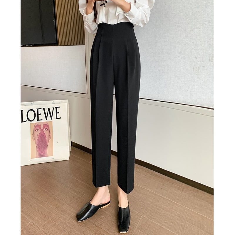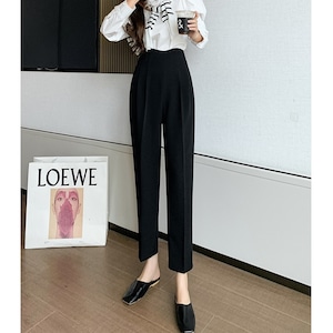 脚のラインをまっすぐ美しく見せてくれる、センタープレス入りのテーパードパンツです。