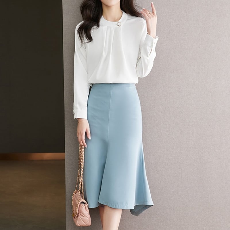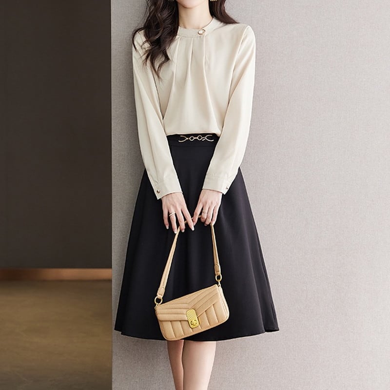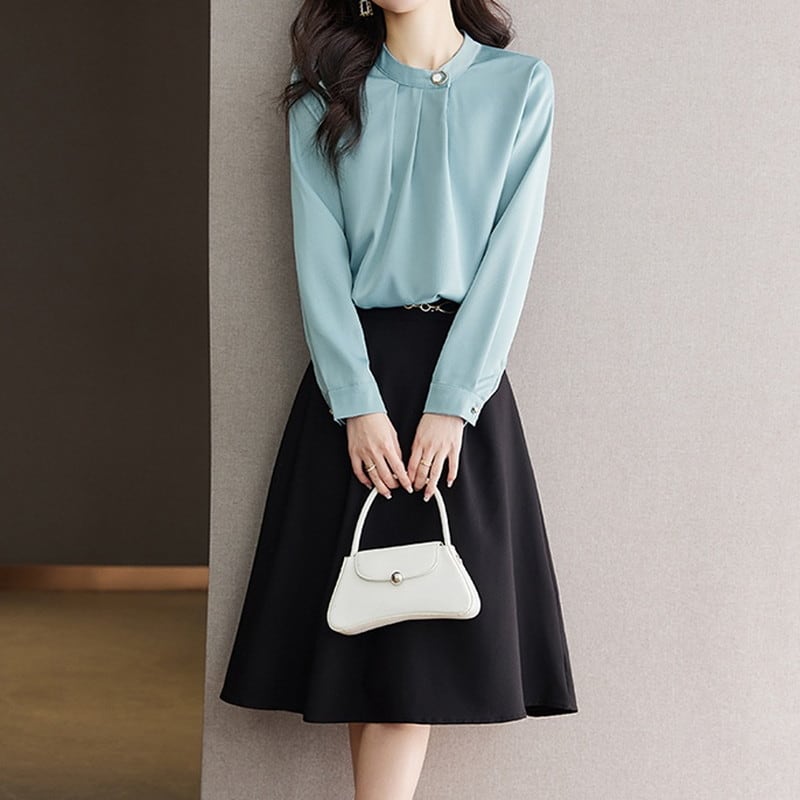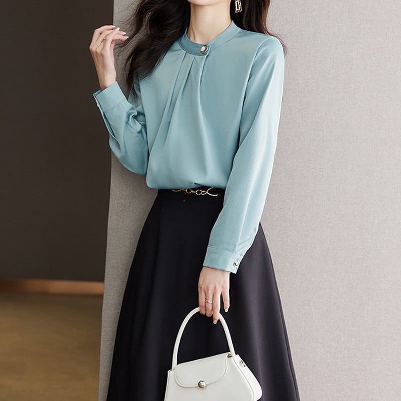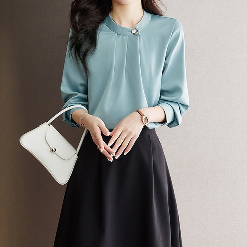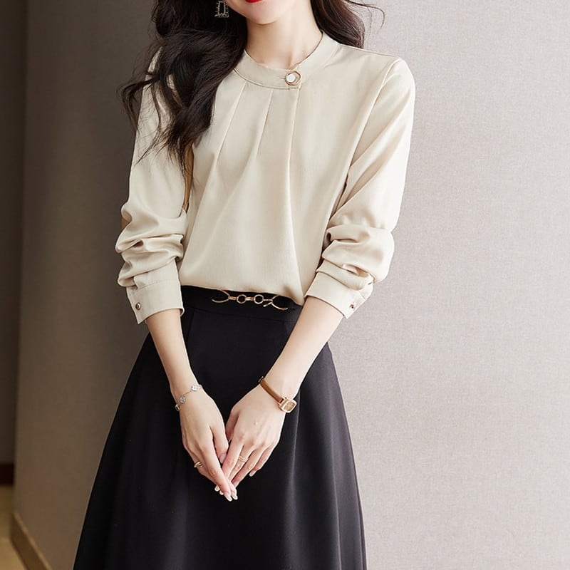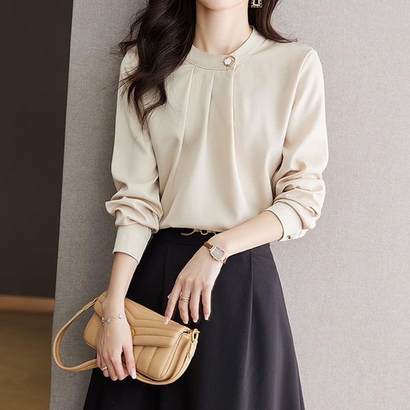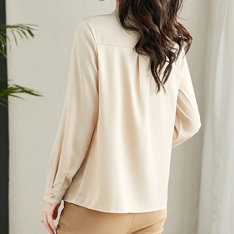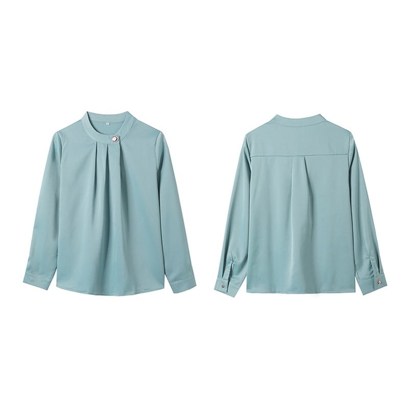 上品な印象を与えるタックデザインが魅力のブラウスです。