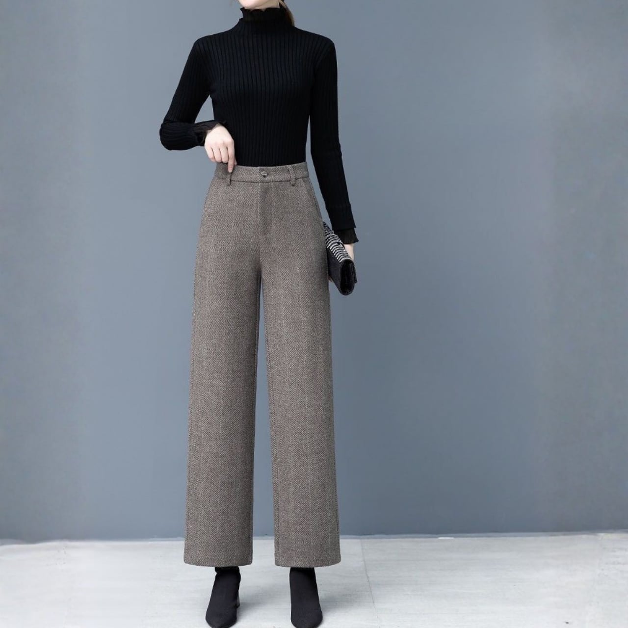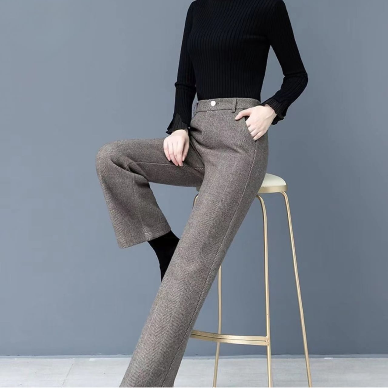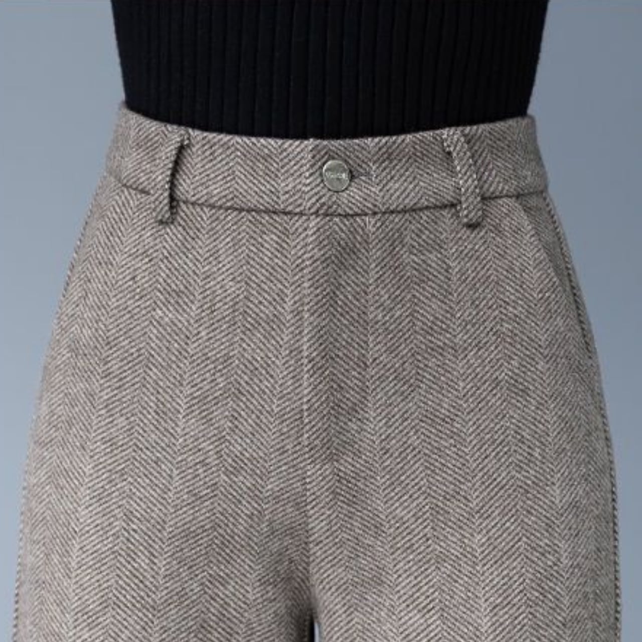 ハイウエストデザインがスタイルアップ効果をもたらし、オフィスシーンにもぴったり。