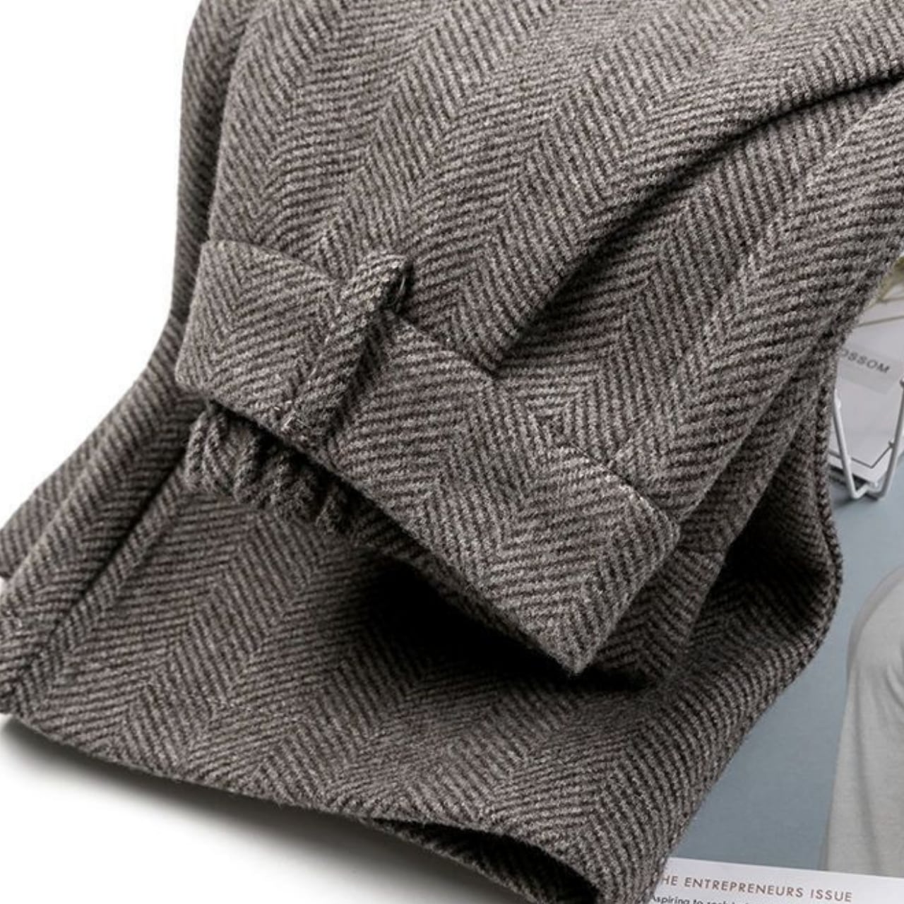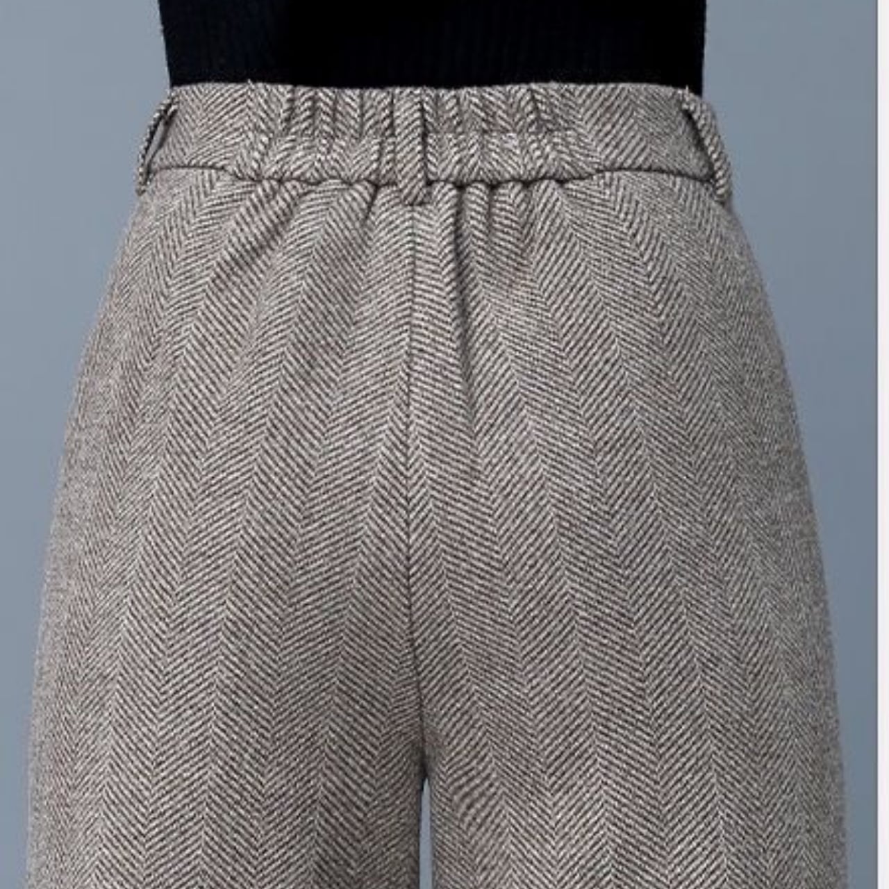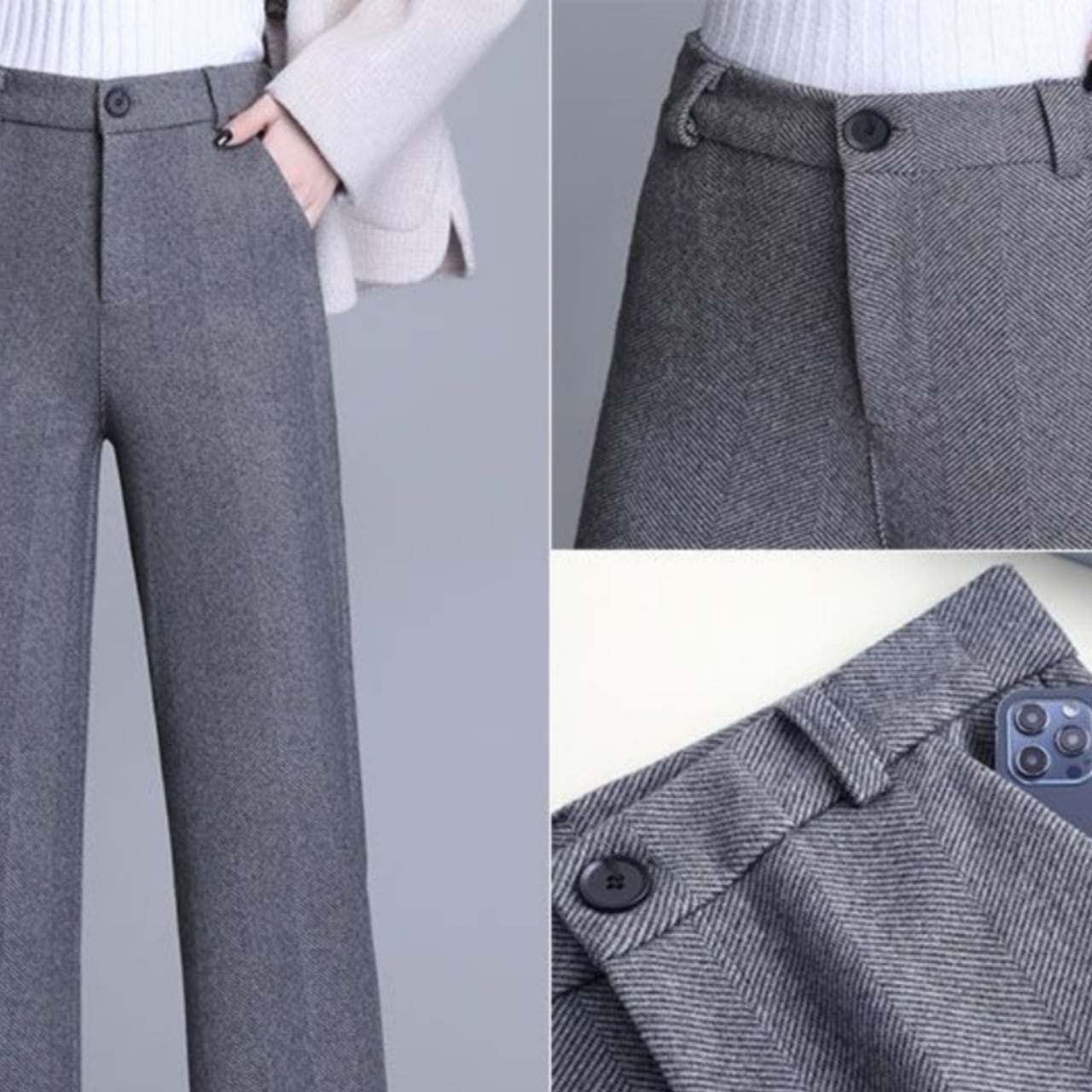 ハイウエストデザインがスタイルアップ効果をもたらし、オフィスシーンにもぴったり。