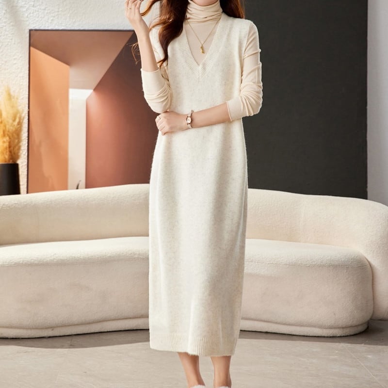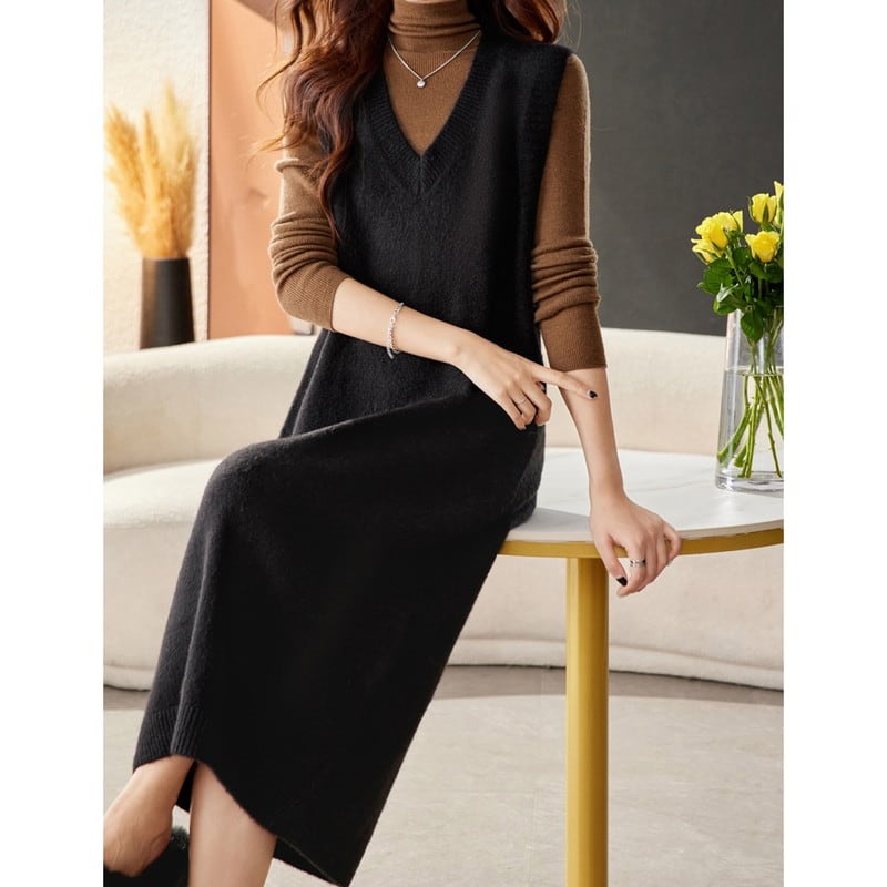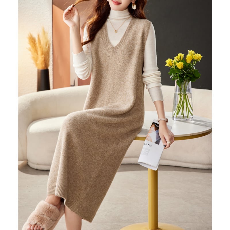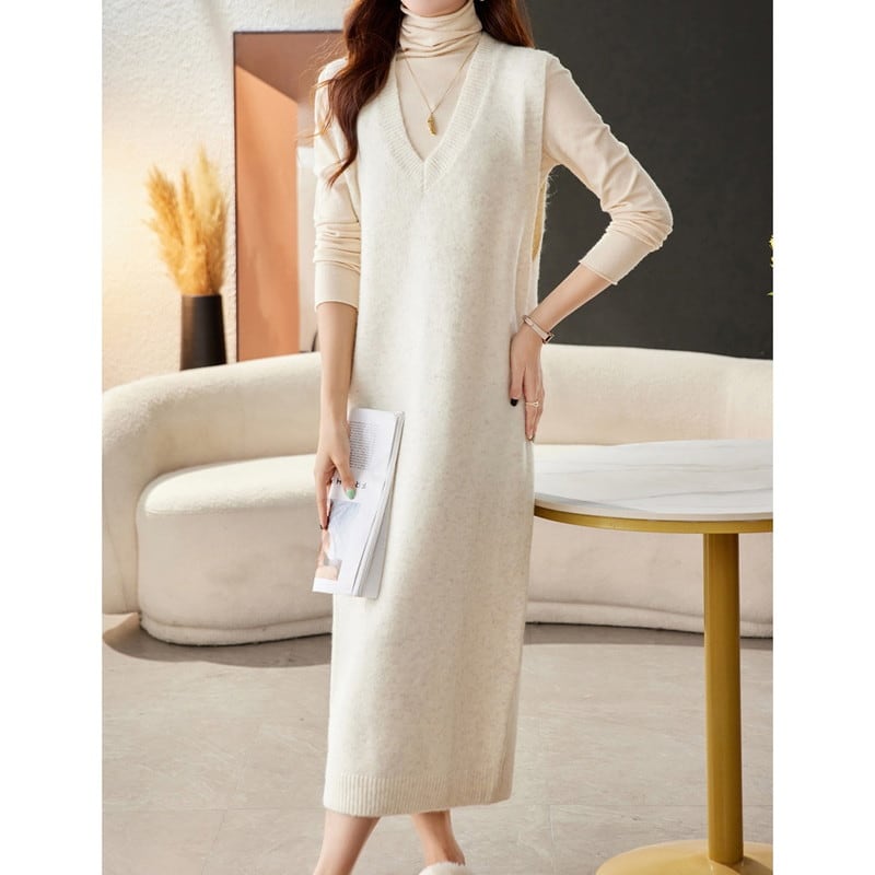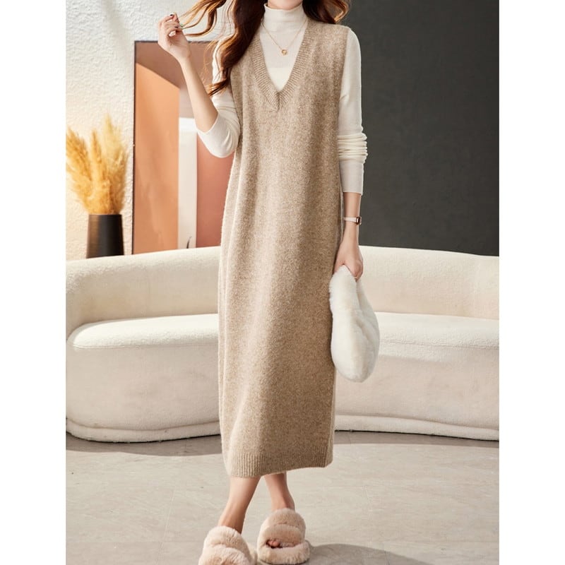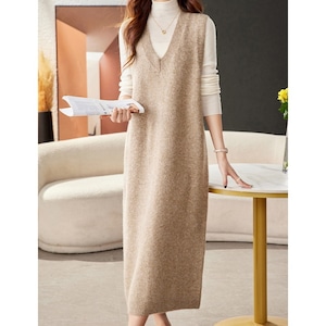 シンプルながらも大人の抜け感を演出してくれるVネックのノースリーブワンピースです。