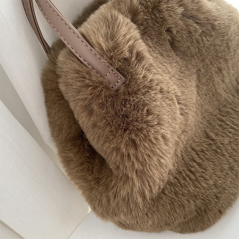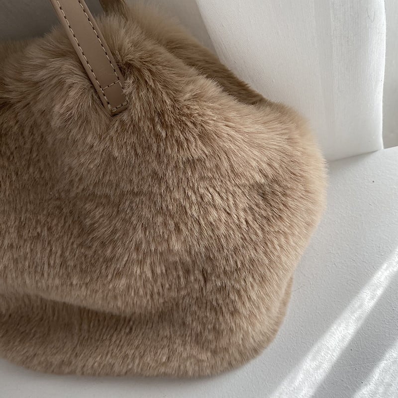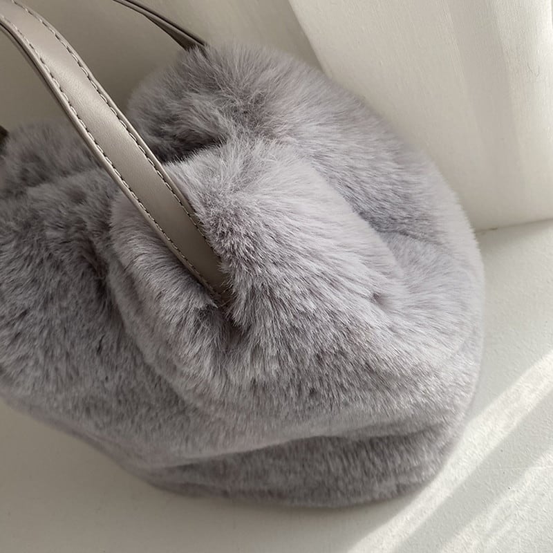 思わず触れたくなるような、ふんわり柔らかなフェイクファー素材が魅力のバッグです。