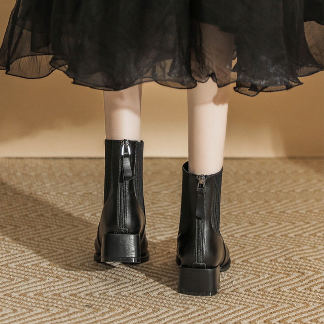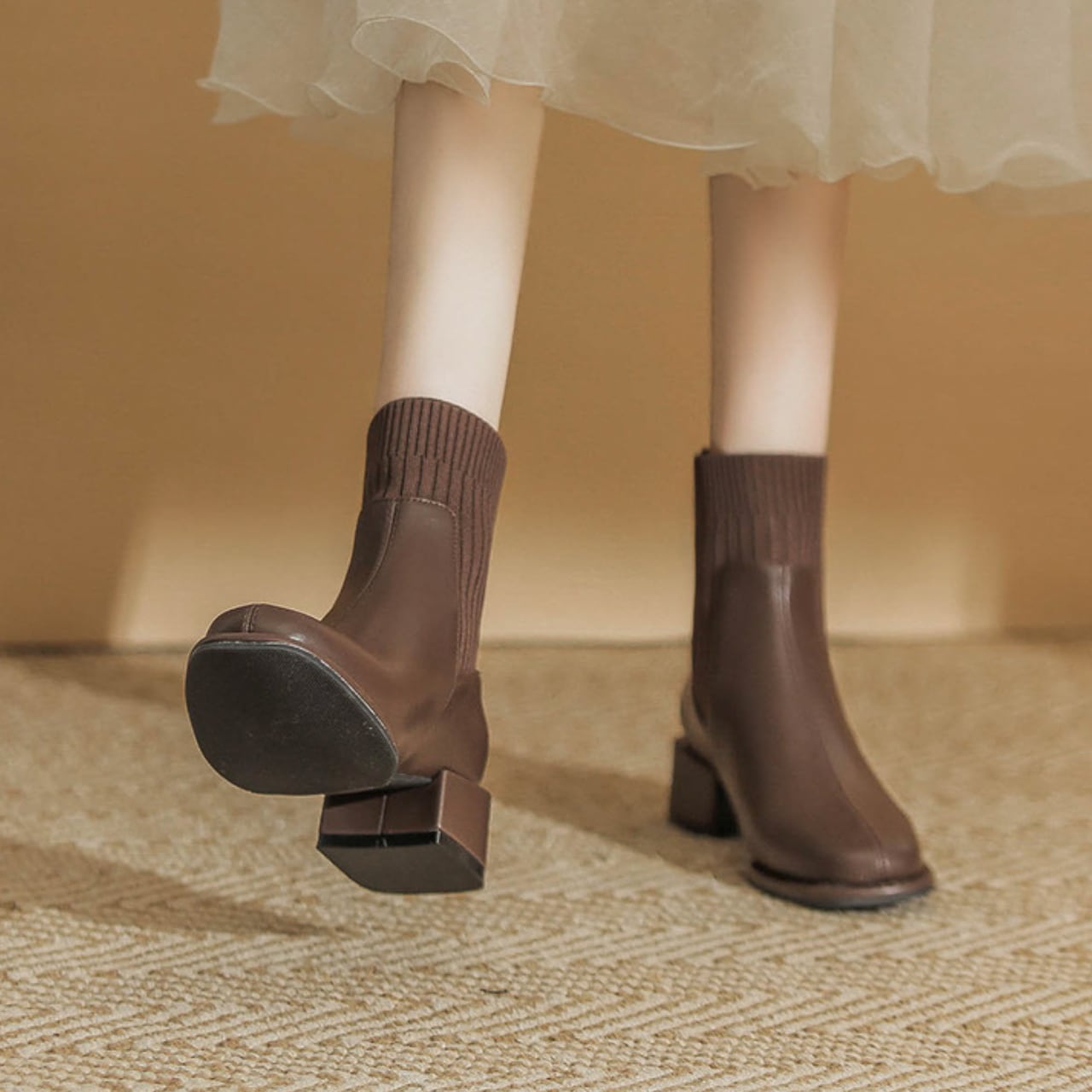 シンプルなデザインで、スカートやパンツスタイルなど、様々なコーディネートに合わせやすく、トレンド感のある足元を演出します。