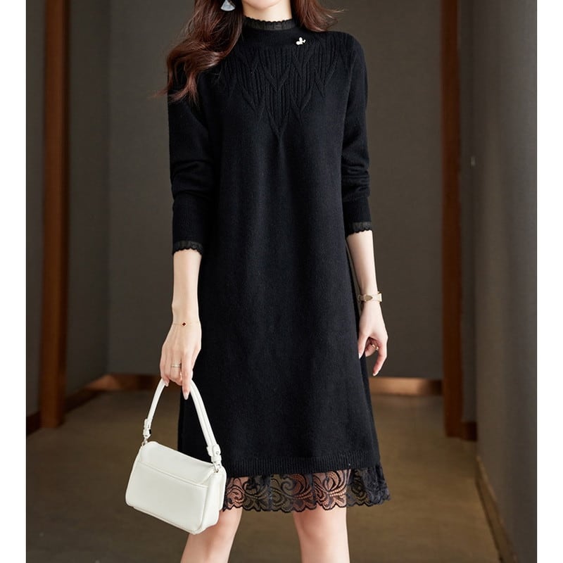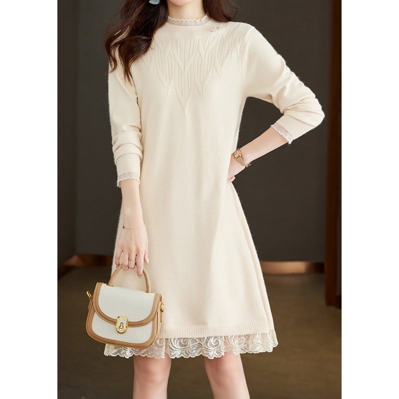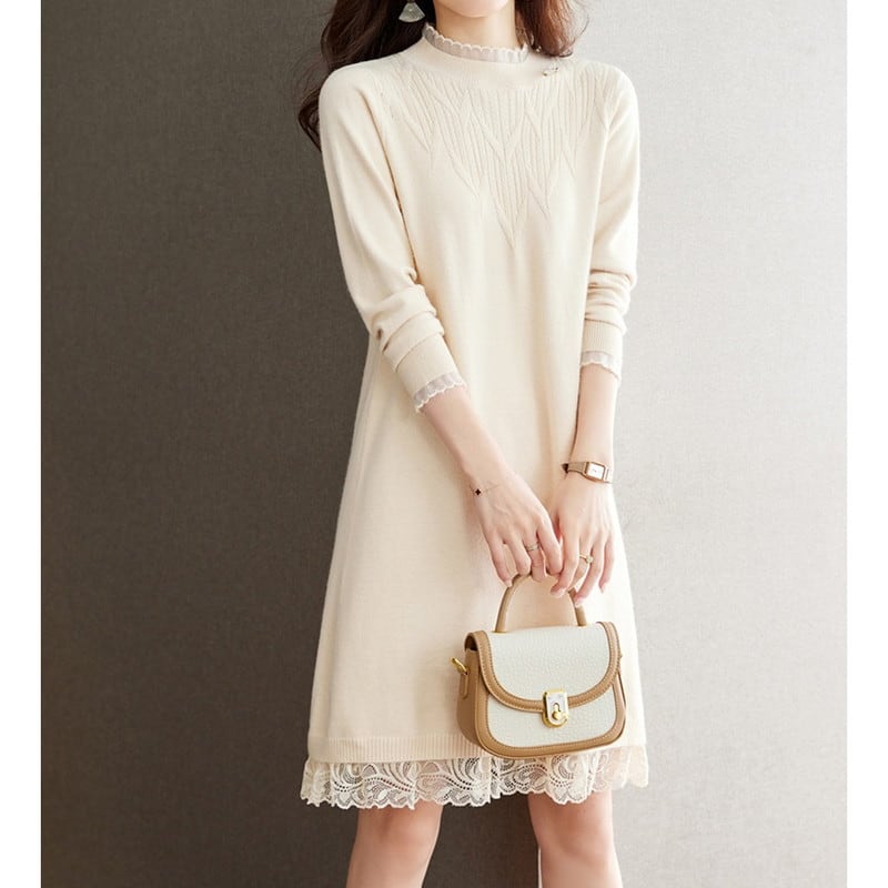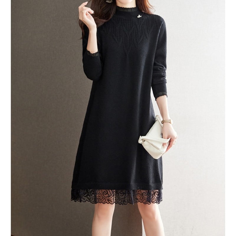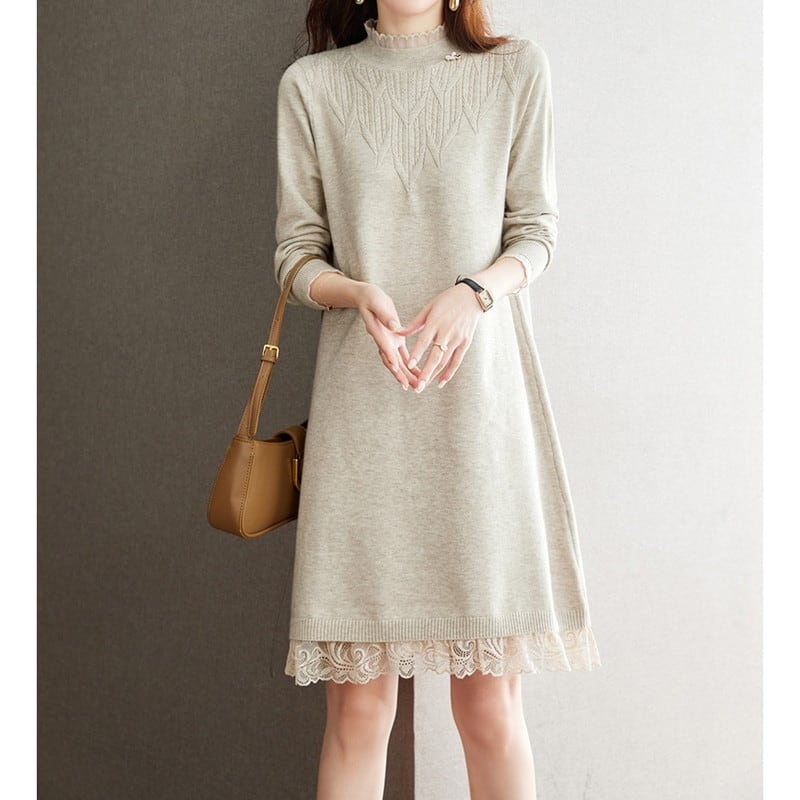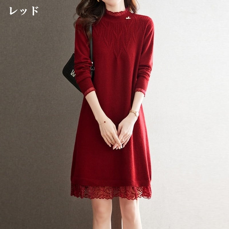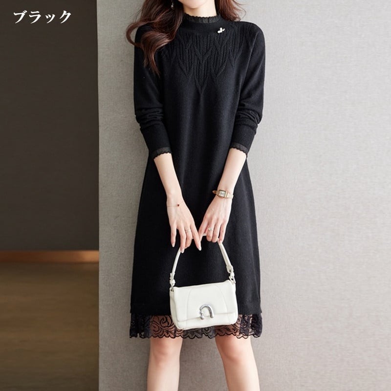 繊細なレースが女性らしさを引き立てるニットワンピースです。