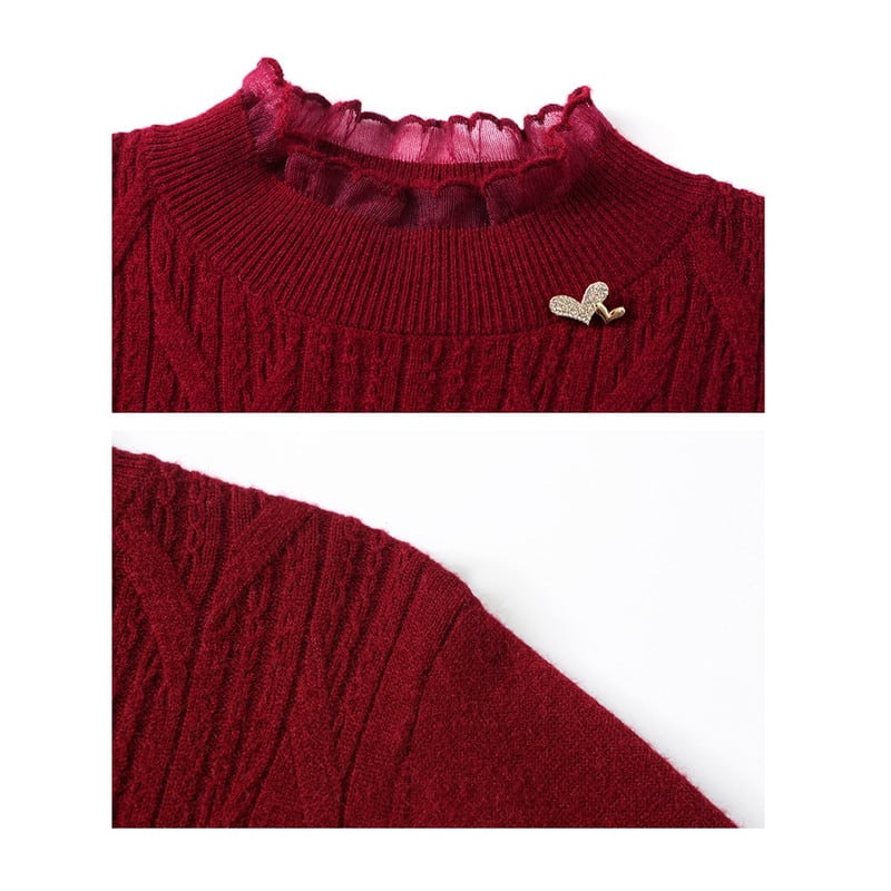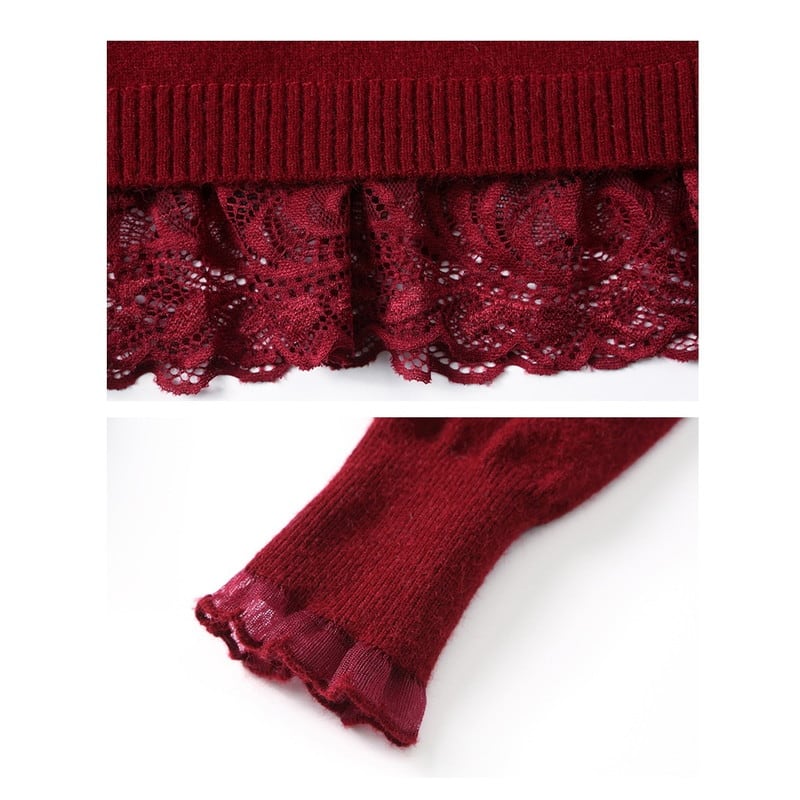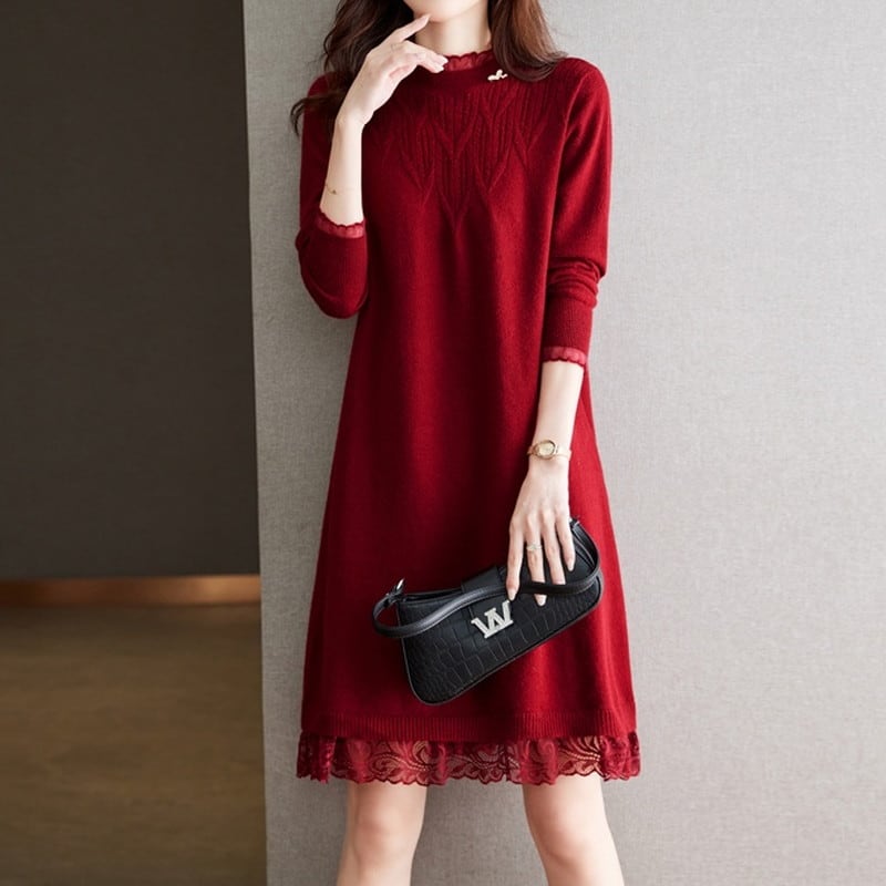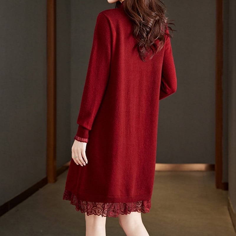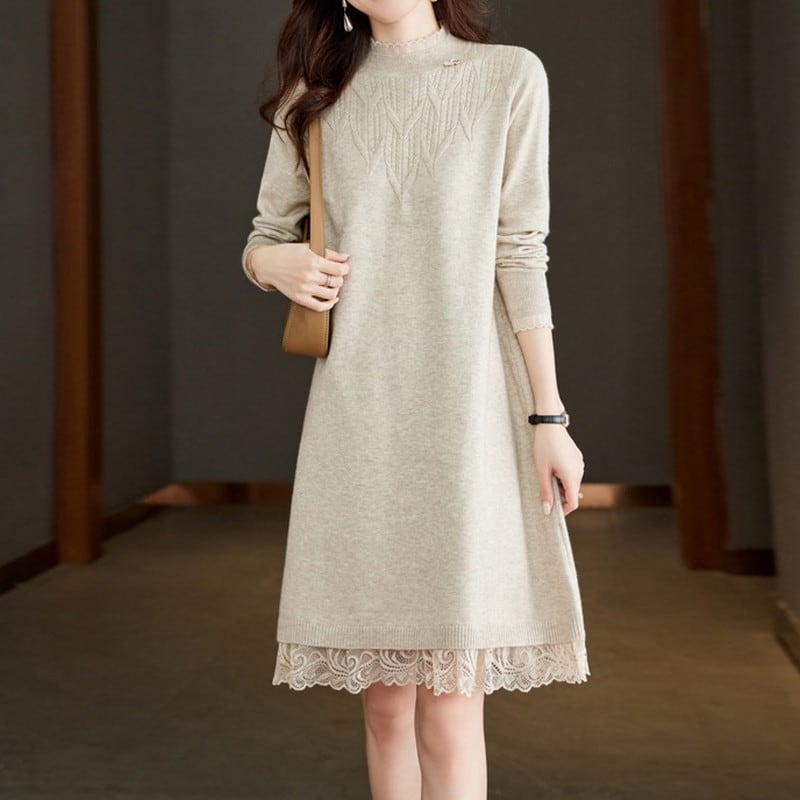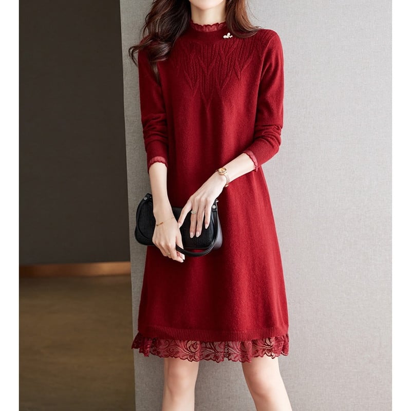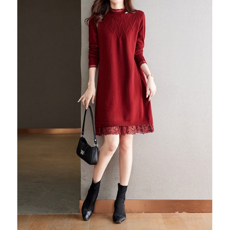繊細なレースが女性らしさを引き立てるニットワンピースです。