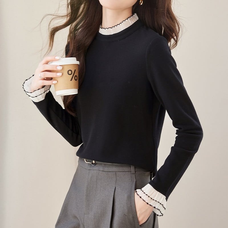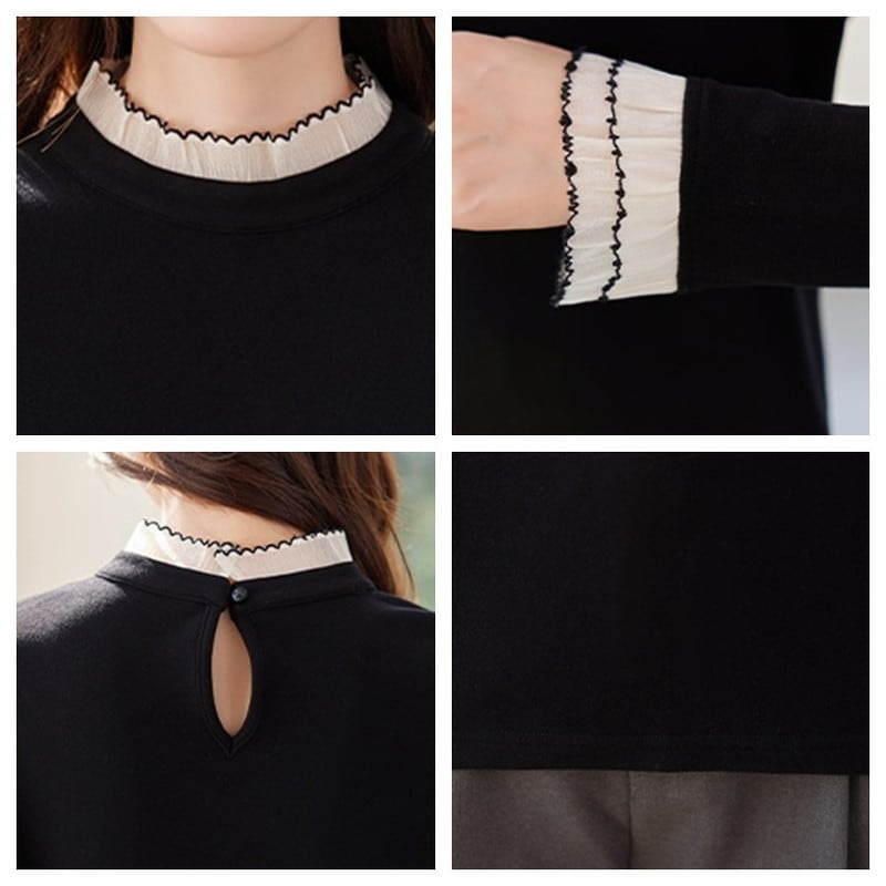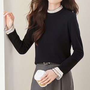 重ね着したようなデザインが上品で、顔まわりをふんわり華やかに見せてくれます。
