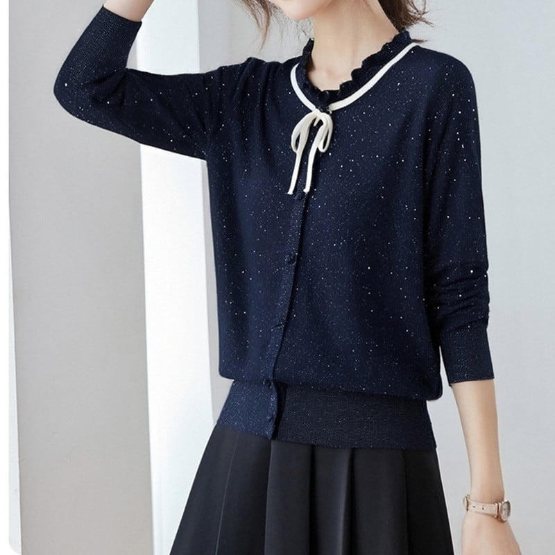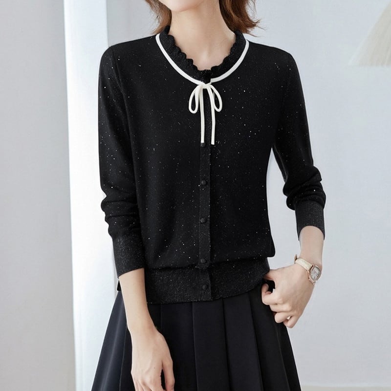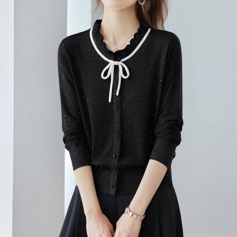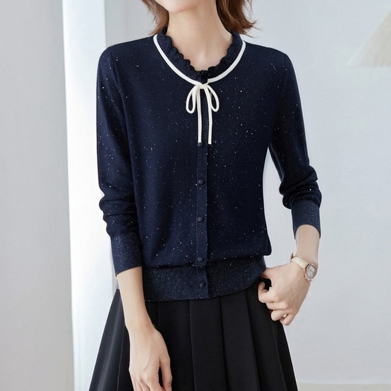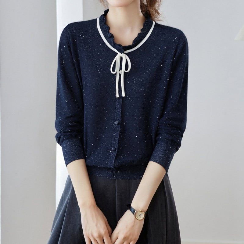 ラメ入りリボンカーディガン Me1605