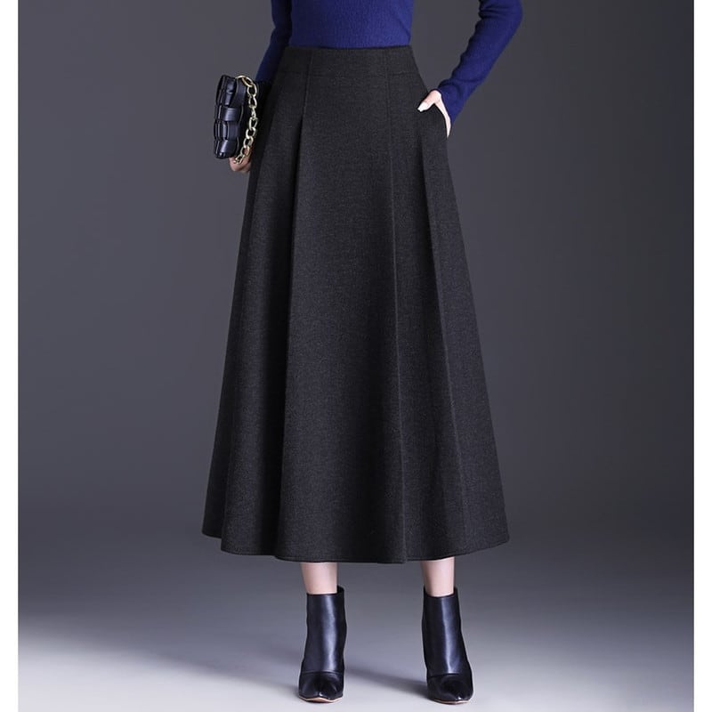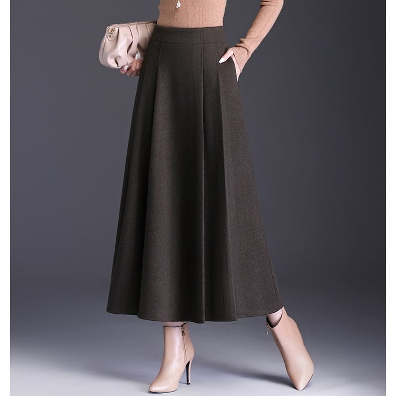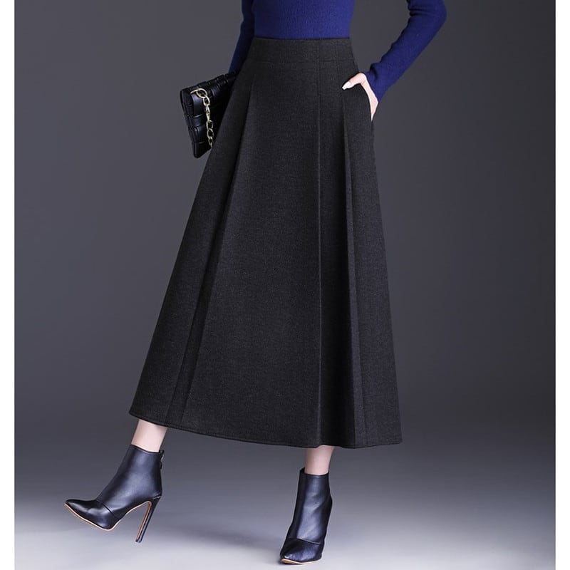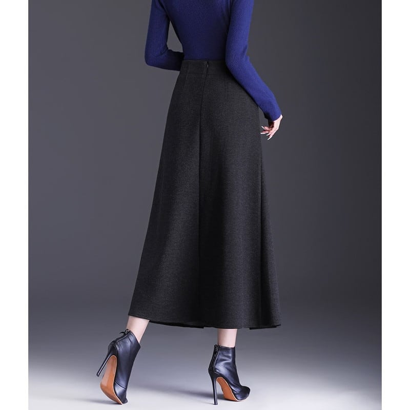 裾にかけて自然に広がるラインが美しいフレアロングスカートです。