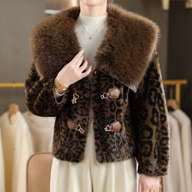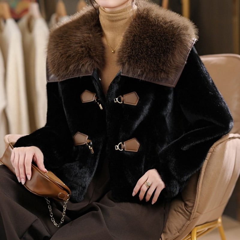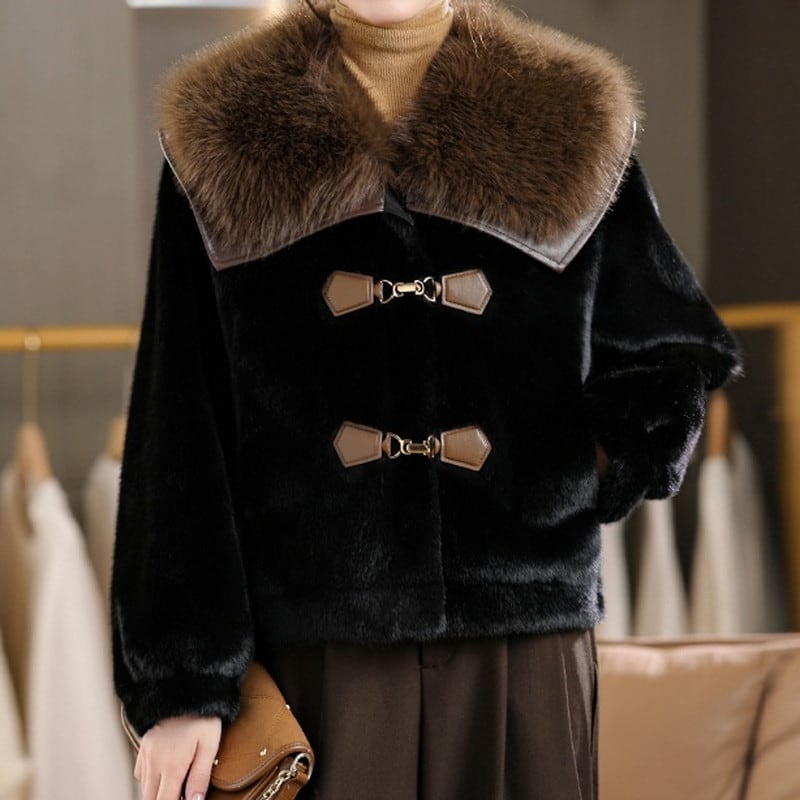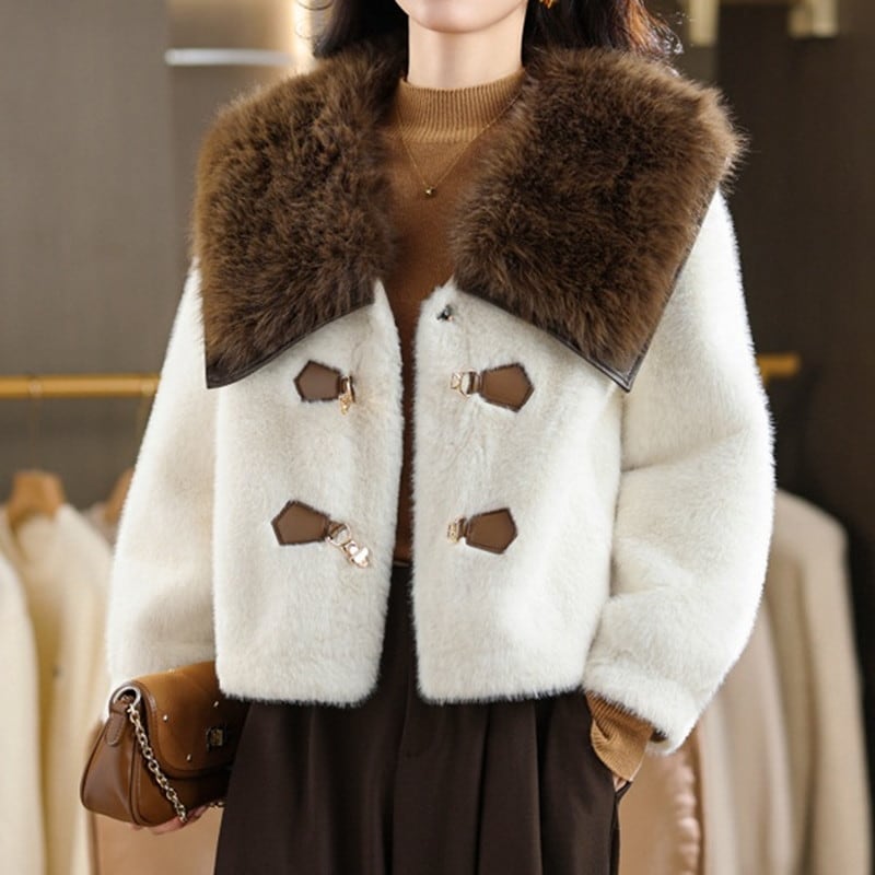 存在感のあるフェイクファーカラーが華やかに映えるショートコートです。