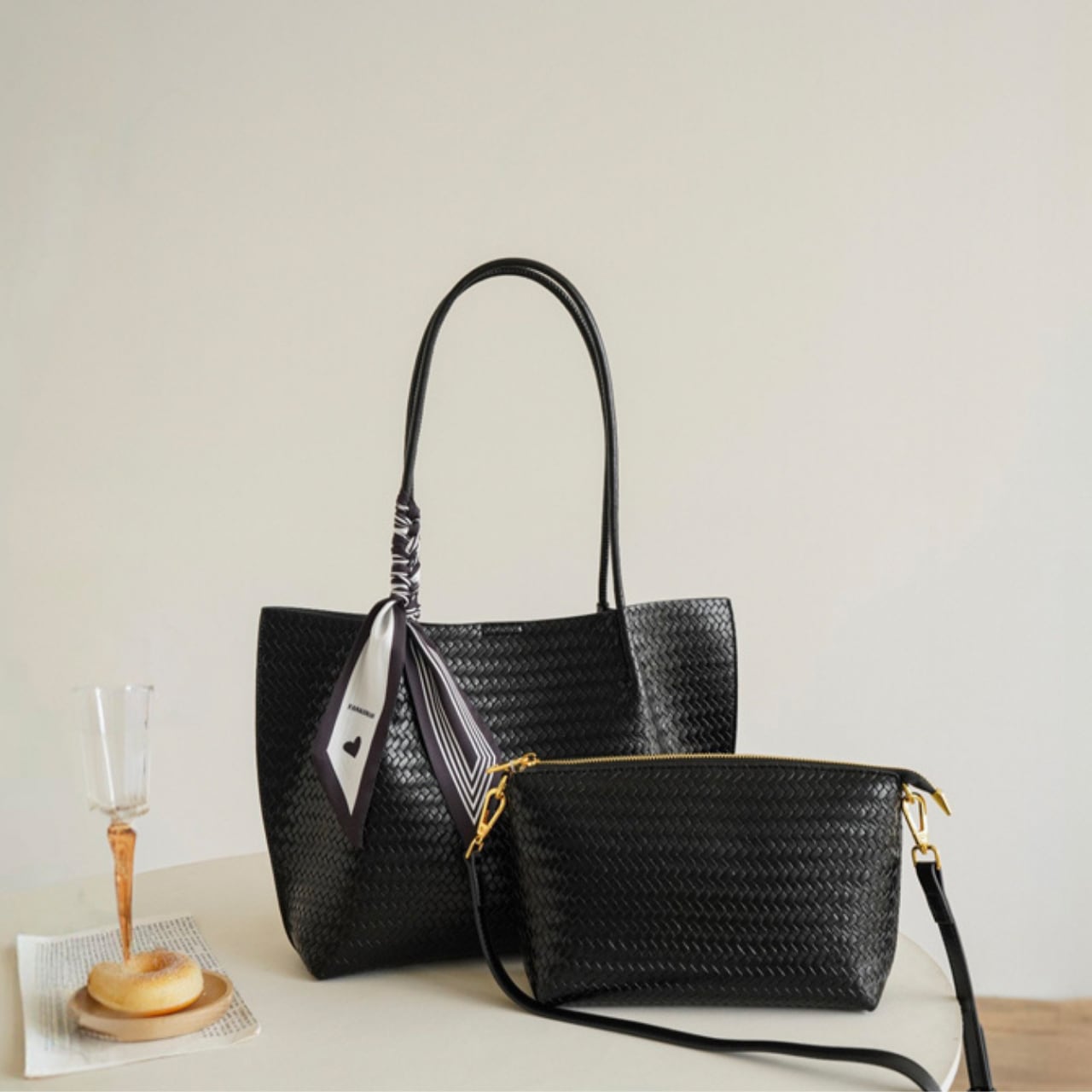 スカーフ付き編み込みデザイントートバッグ Me1609