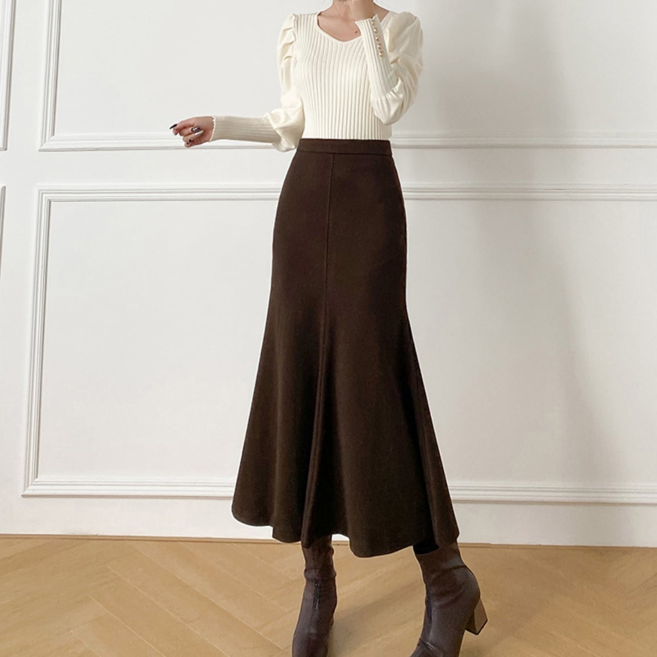 上品なシルエットが魅力のスカートです。