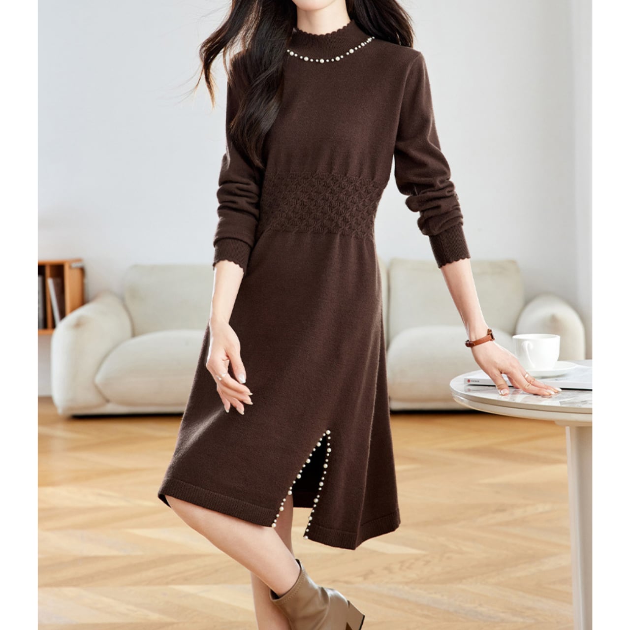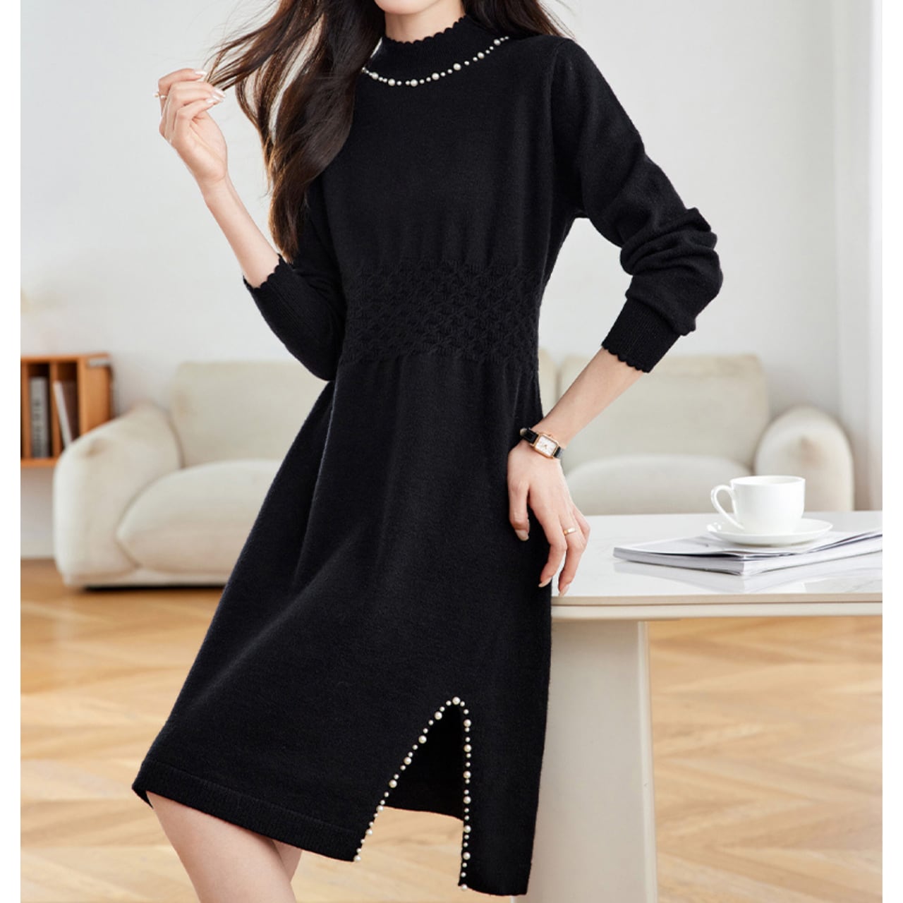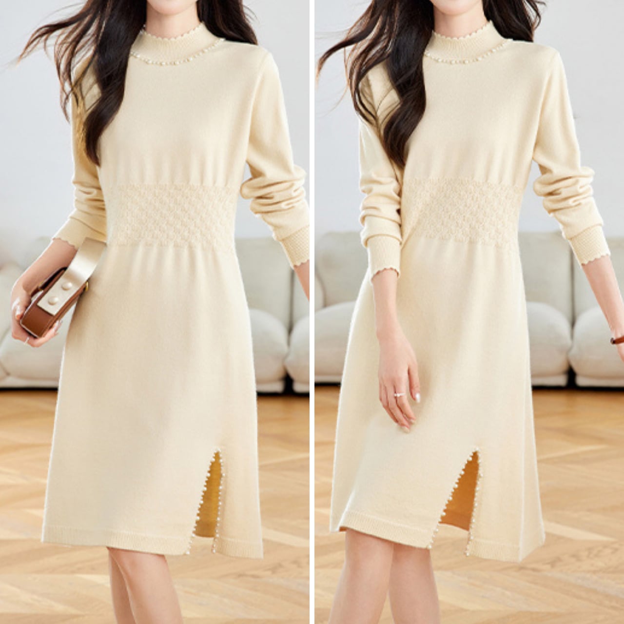 裾のスリットにもパールがあしらわれており、さりげないアクセントになっています。