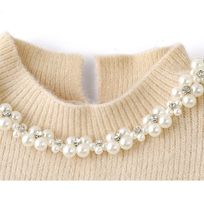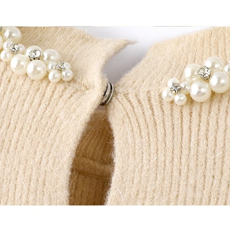 パールのアクセ風デザインが、顔まわりを明るく見せてくれます。
