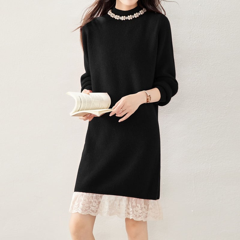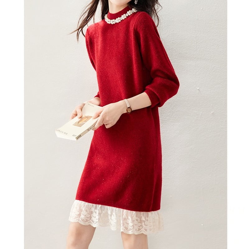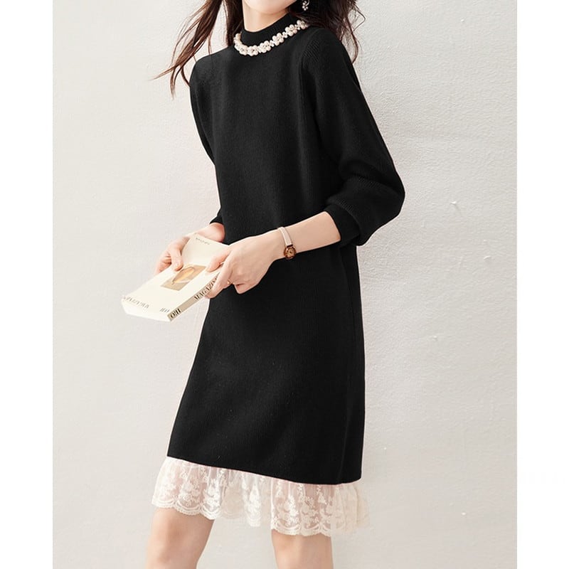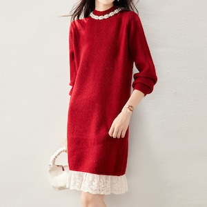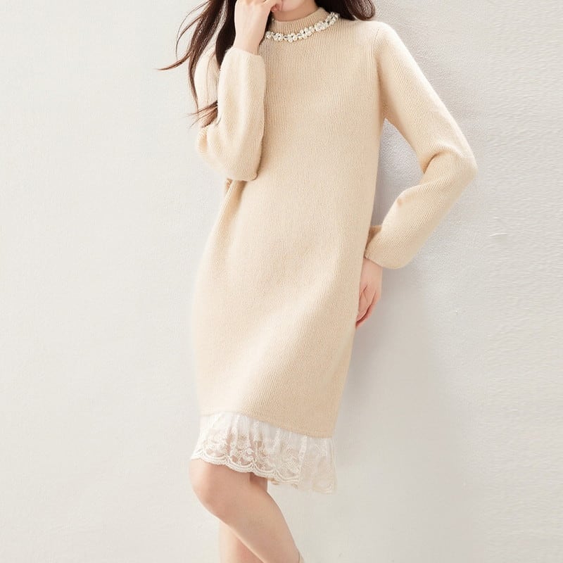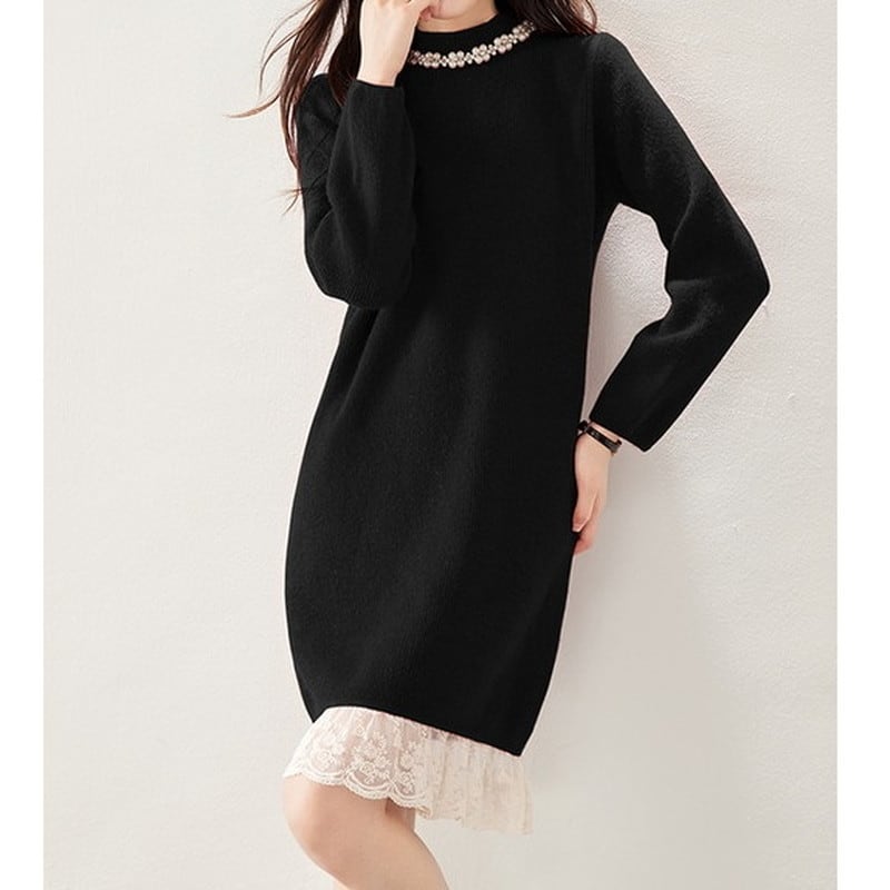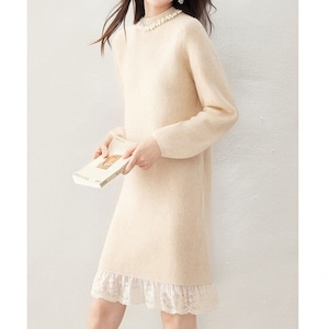 レースヘムニットワンピース Me1615