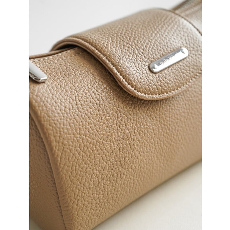 ころんとしたフォルムが女性らしい印象で、小物をすっきり収納できるサイズ感。