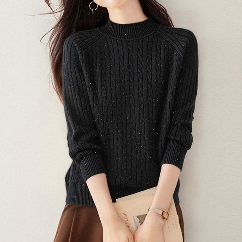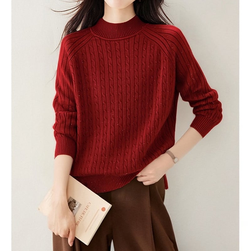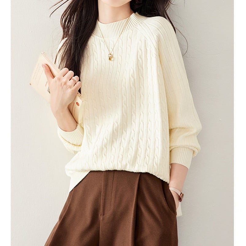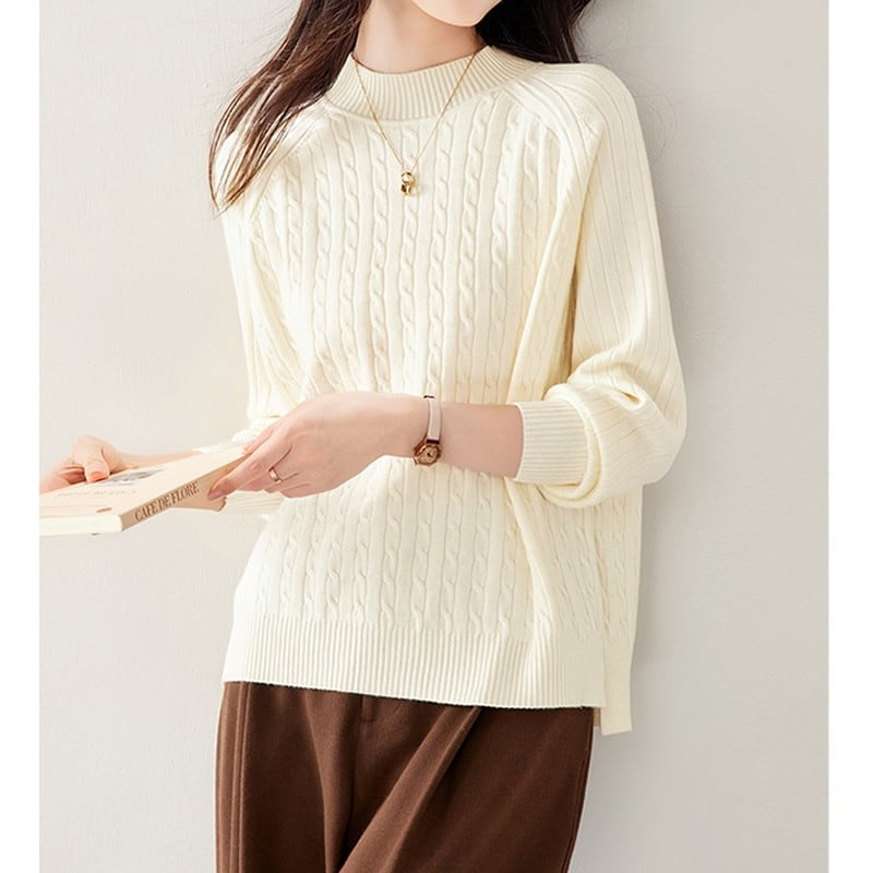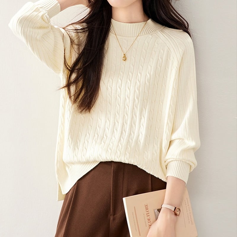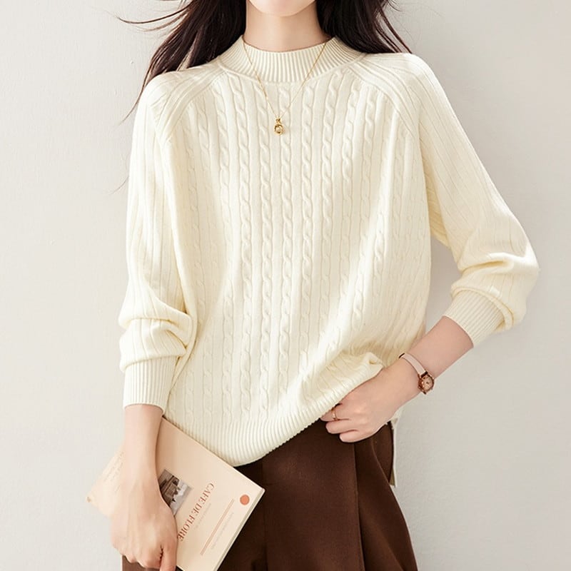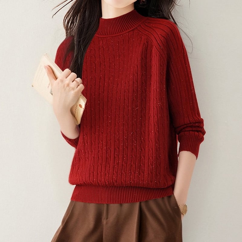 首まわりを優しく包むハイネックで、寒い季節にぴったりな一枚です。