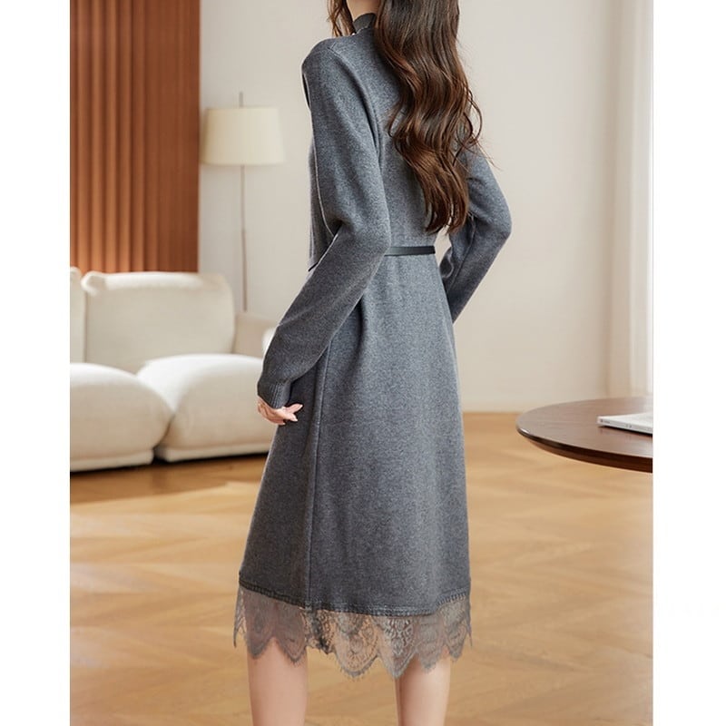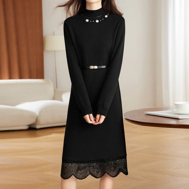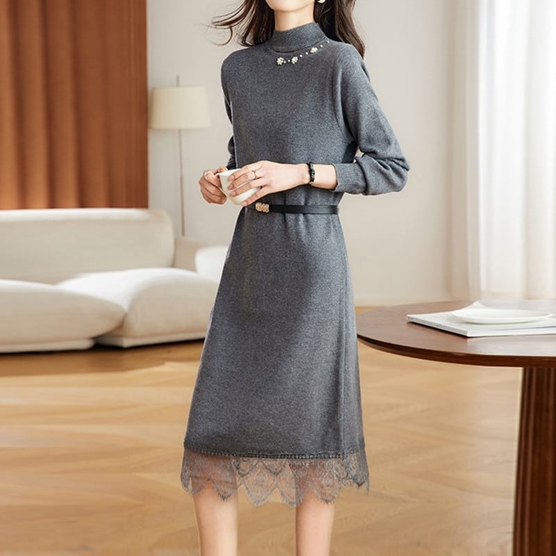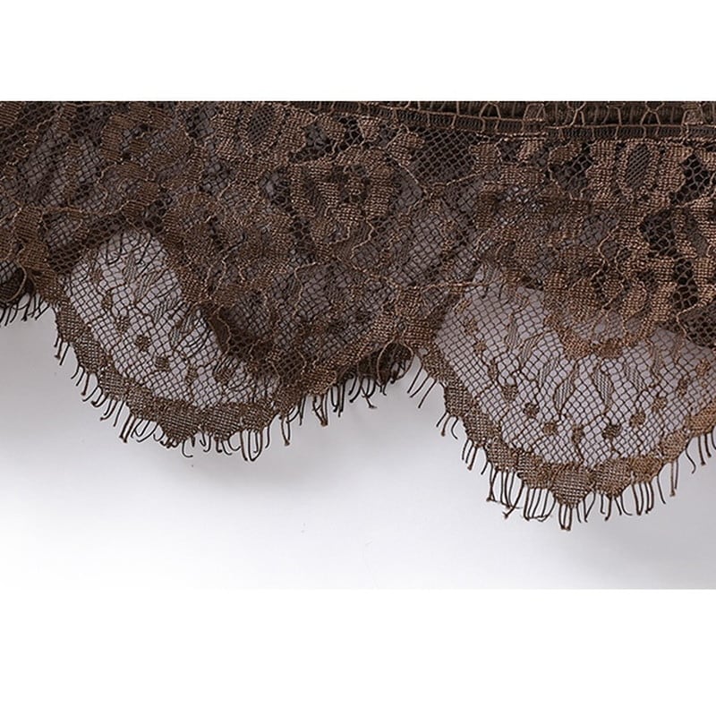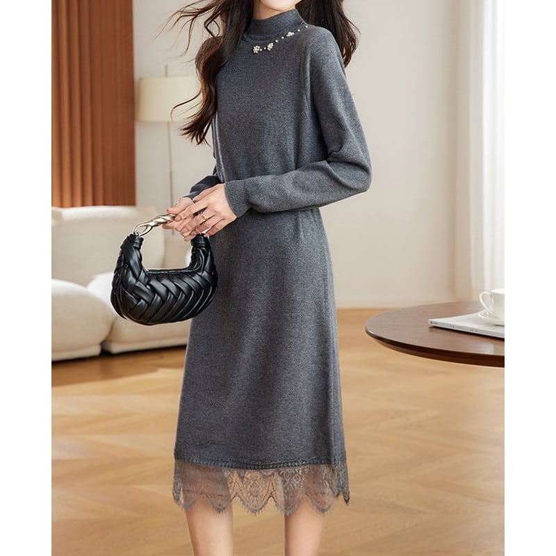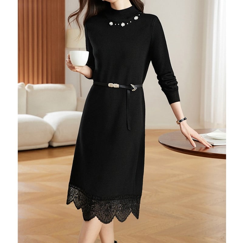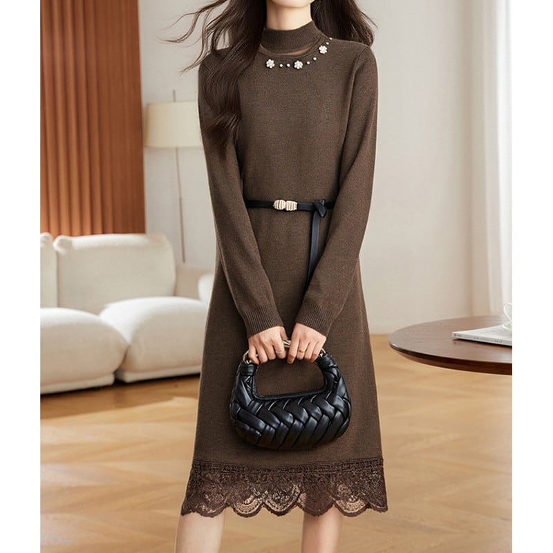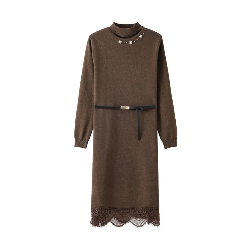 首元のビジューが華やかさを添え、大人の上品さを引き立てるデザイン。