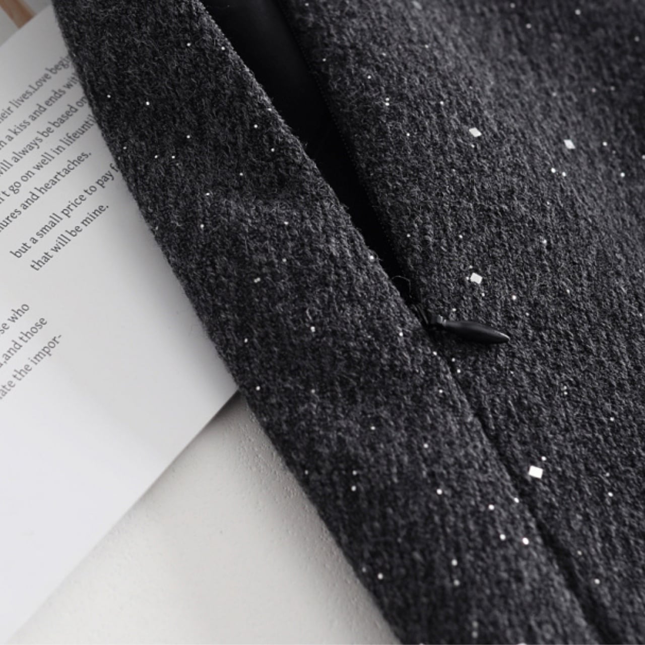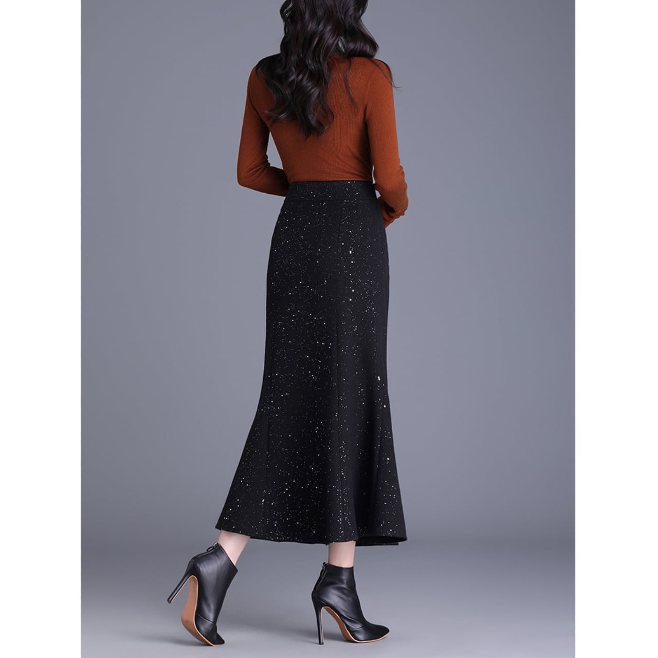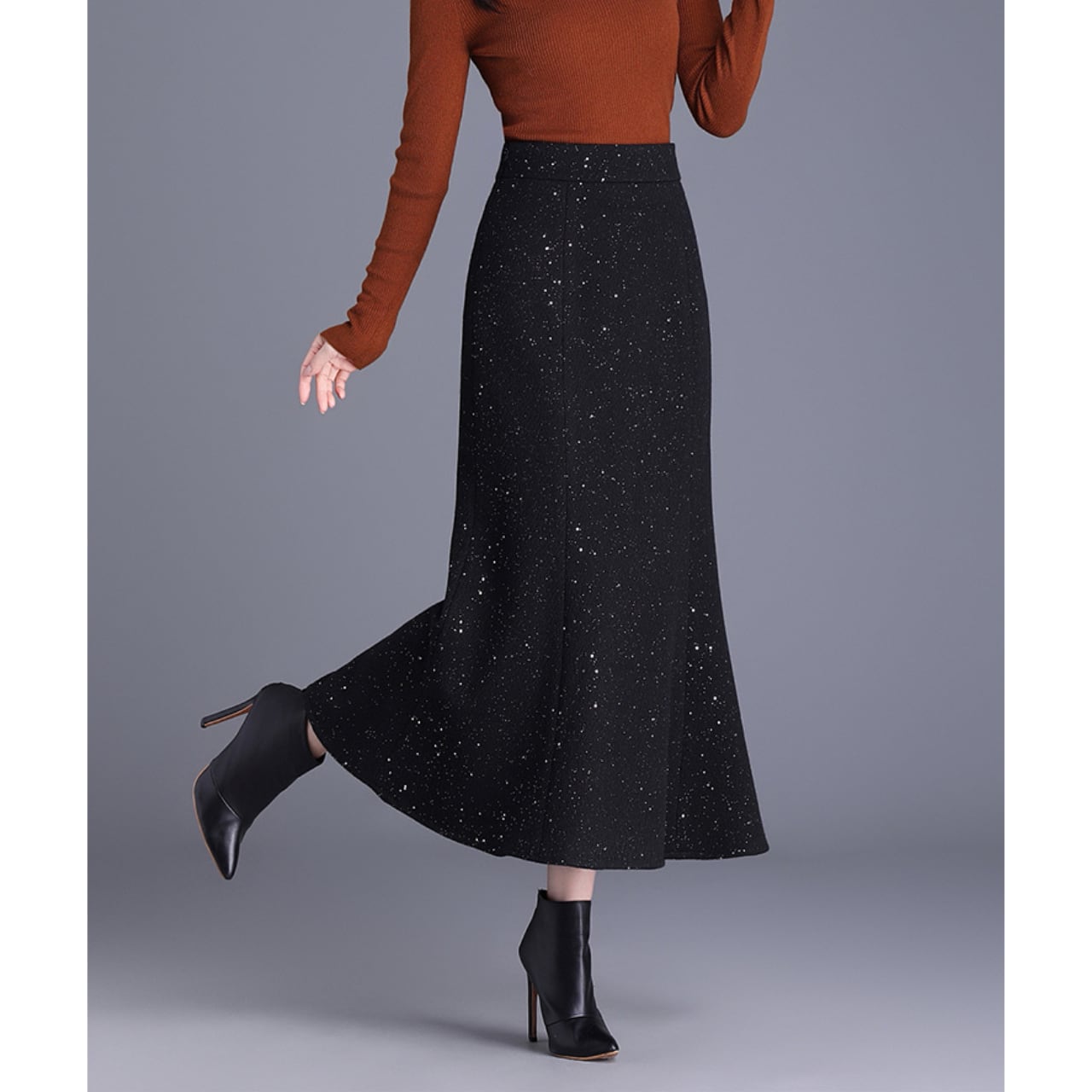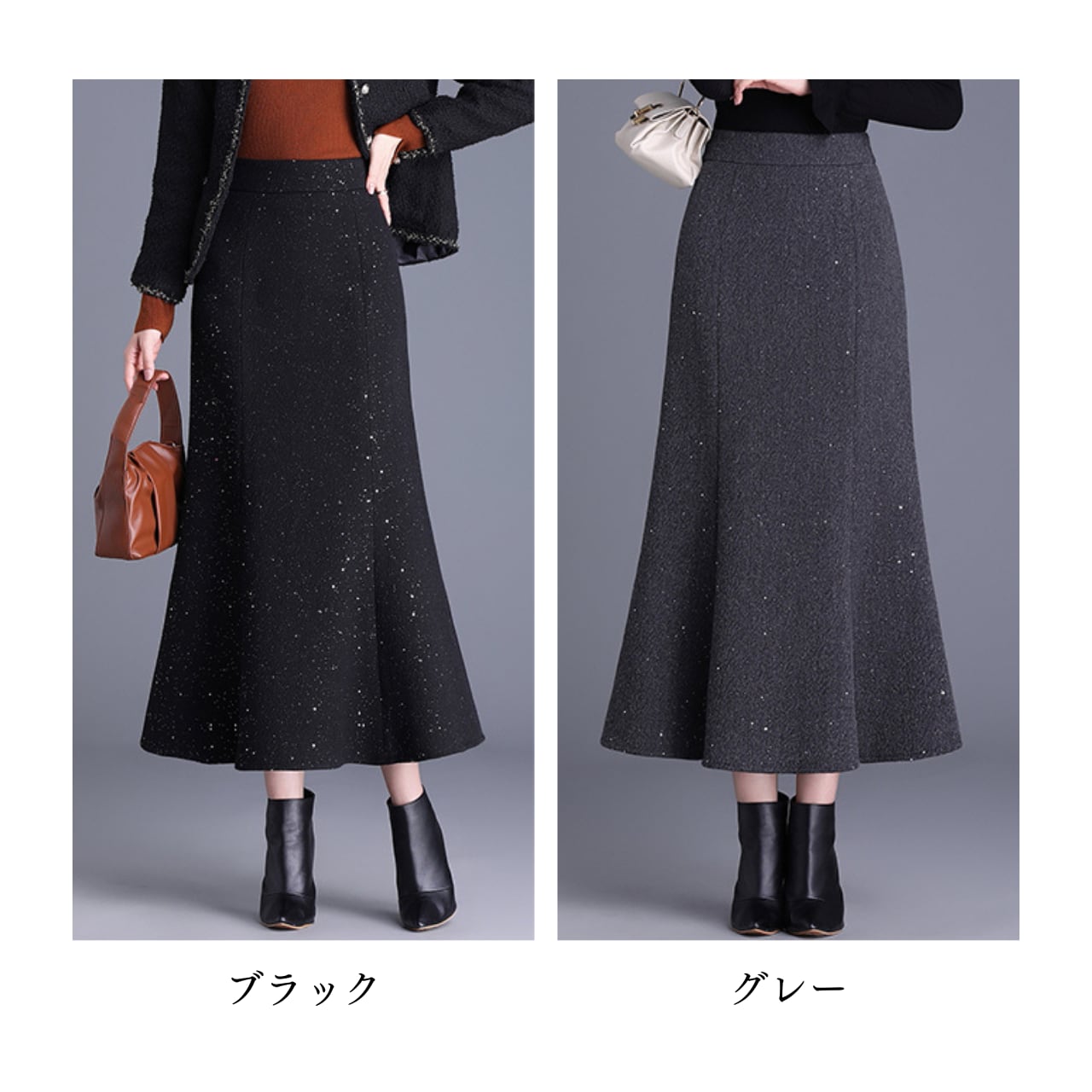 上品なラメがさりげなく輝きを添えるロングスカートです。