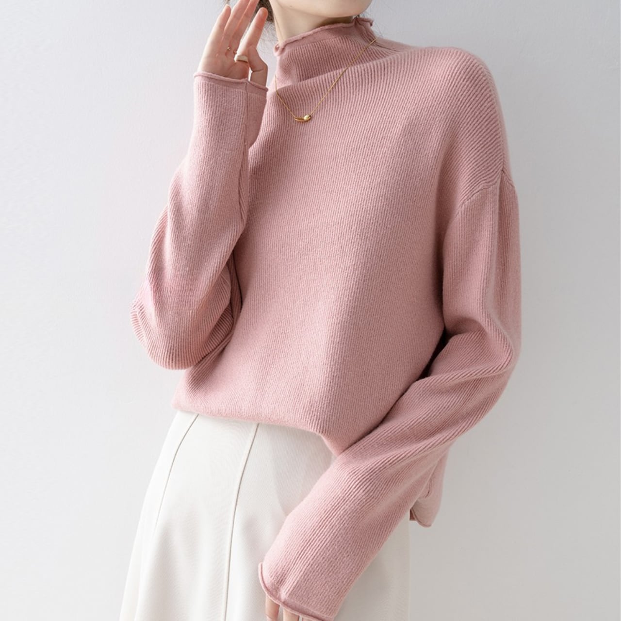タートルネックが首元を暖かく包み込み、秋冬のコーディネートに重宝します。